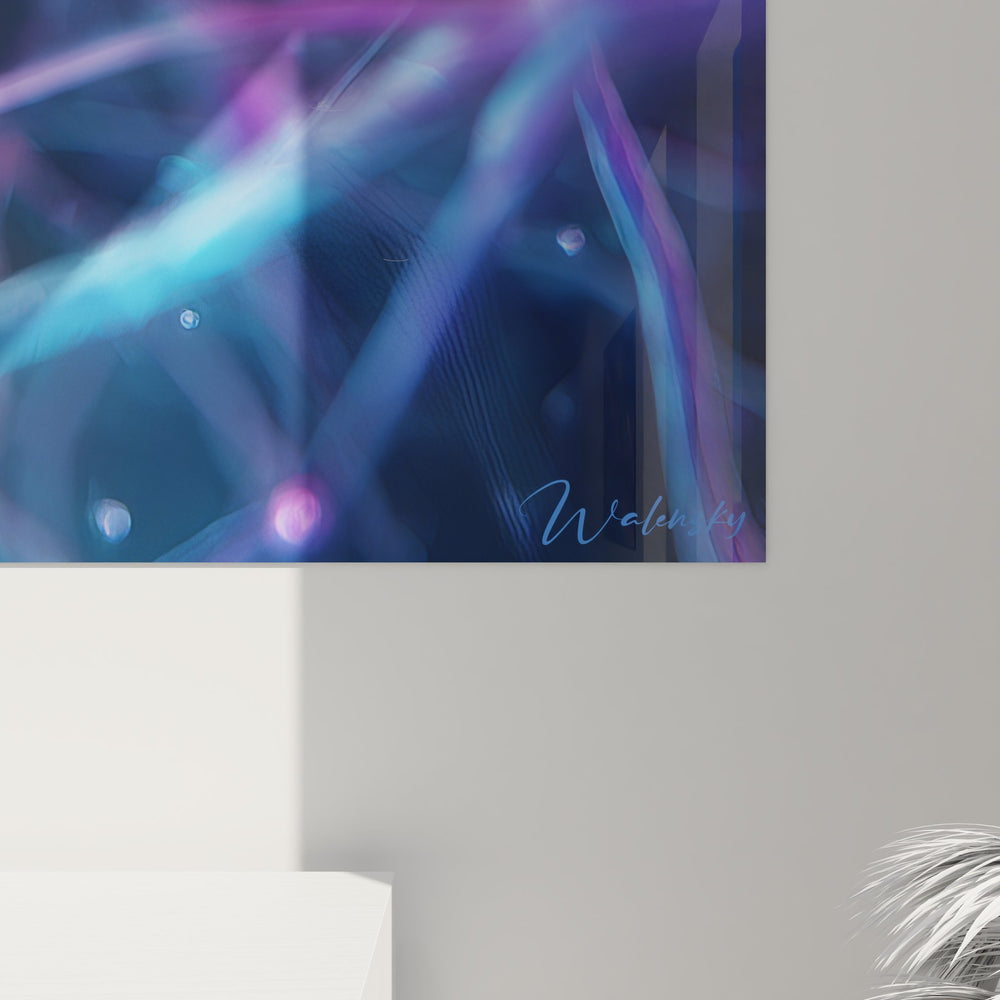 La palette chromatique de ce tableau neuronal violet joue sur les contrastes entre les tons violets profonds et les nuances bleues électriques. Ces couleurs évoquent l'activité électrique des neurones, symbolisant la transmission de l'information dans le système nerveux. Les reflets lumineux bleus représentent les impulsions nerveuses, créant une atmosphère mystique et scientifique à la fois.