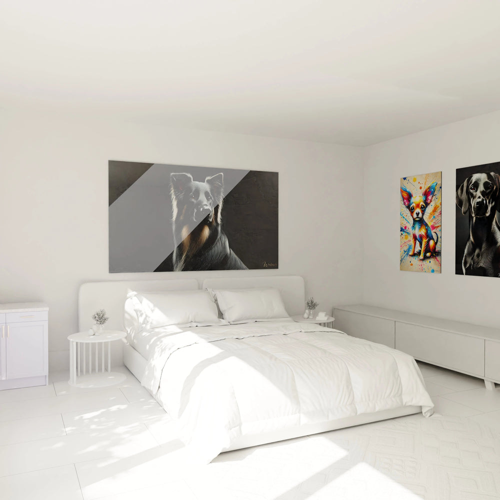 Le Tableau Noble Veilleur - Edition Chien rend hommage à la fidélité intemporelle de nos compagnons à quatre pattes et incarne la noblesse silencieuse qui transcende leur simple statut d’animaux. C’est une œuvre qui invite à la méditation, qui adoucit les esprits tout en affirmant la grandeur de l’instant présent.