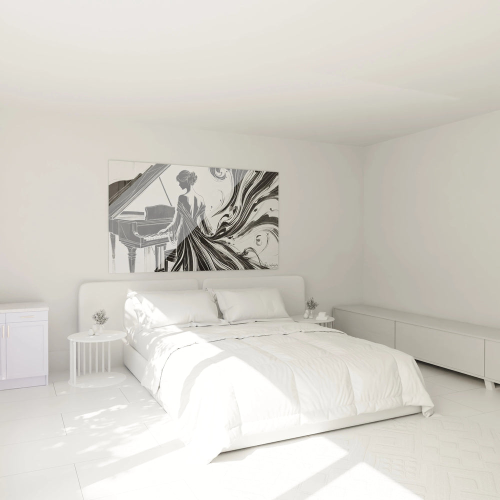 Imaginez un instant où le son prend forme, où la musique se fait visible dans une danse harmonieuse de lignes et de contrastes. Le Tableau Notes de Grâce - Edition Black & White incarne cette fusion subtile entre le visuel et l’auditif, transformant votre intérieur en un espace d’élégance et d’émotion. Ce tableau ne se contente pas d’habiller vos murs : il raconte une histoire, celle d’une pianiste captivée, dont les doigts effleurent les touches pour faire naître une mélodie pleine de grâce et de puissance.