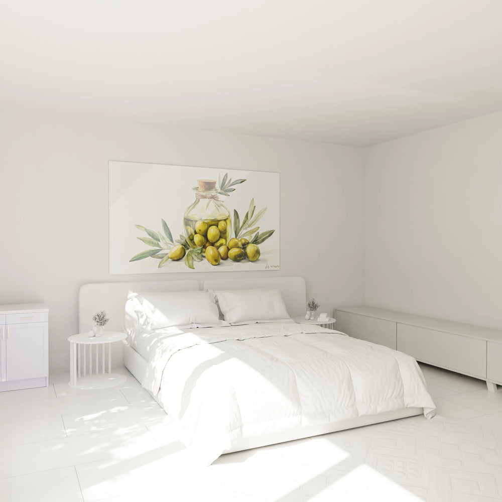 Ce tableau invite Ă ressentir la quiĂ©tude dâune cuisine baignĂ©e de lumiĂšre naturelle, oĂč le vert Ă©clatant et les nuances dâor ambrĂ© sâĂ©quilibrent avec douceur. Il Ă©voque la simplicitĂ© prĂ©cieuse des instants de partage autour dâune table, la gourmandise sublimĂ©e par la richesse de lâhuile dâolive authentique. En affichant cette Ćuvre, vous offrez Ă votre espace une aura apaisante et raffinĂ©e qui suscite la convivialitĂ© et la paix intĂ©rieure.