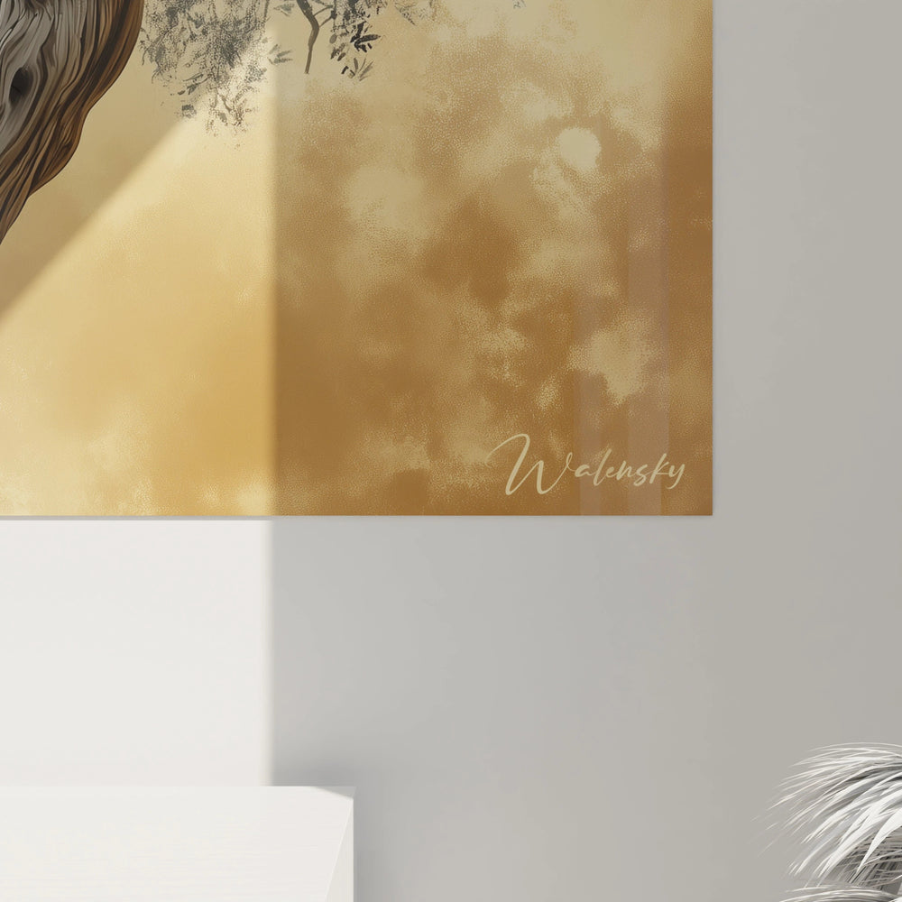 Imaginez un instant un aprĂšs-midi baignĂ© de lumiĂšre dorĂ©e, oĂč le tronc robuste dâun olivier centenaire vous invite Ă la contemplation. Chaque courbe, chaque relief travaillĂ© rĂ©vĂšle la sagesse du temps, sculptĂ©e dans une matiĂšre presque palpable. Le feuillage vert Ă©clatant danse sous une lumiĂšre chaleureuse, Ă©voquant la rĂ©silience et la vitalitĂ© dâun arbre qui traverse les Ăąges avec grĂące. Ce tableau est une pause invitant Ă la sĂ©rĂ©nitĂ©, transformant votre piĂšce en un havre de calme et de profondeur.