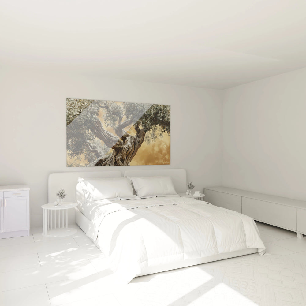 Cette harmonie chromatique Ă©voque lâauthenticitĂ© mĂ©diterranĂ©enne, mĂȘlant noblesse et douceur dans une composition Ă©quilibrĂ©e et lumineuse. GrĂące Ă son rĂ©alisme texturĂ©, vous sentirez presque sous vos doigts la rugositĂ© de lâĂ©corce, le mouvement des branches, comme si lâarbre vous murmurait ses secrets.