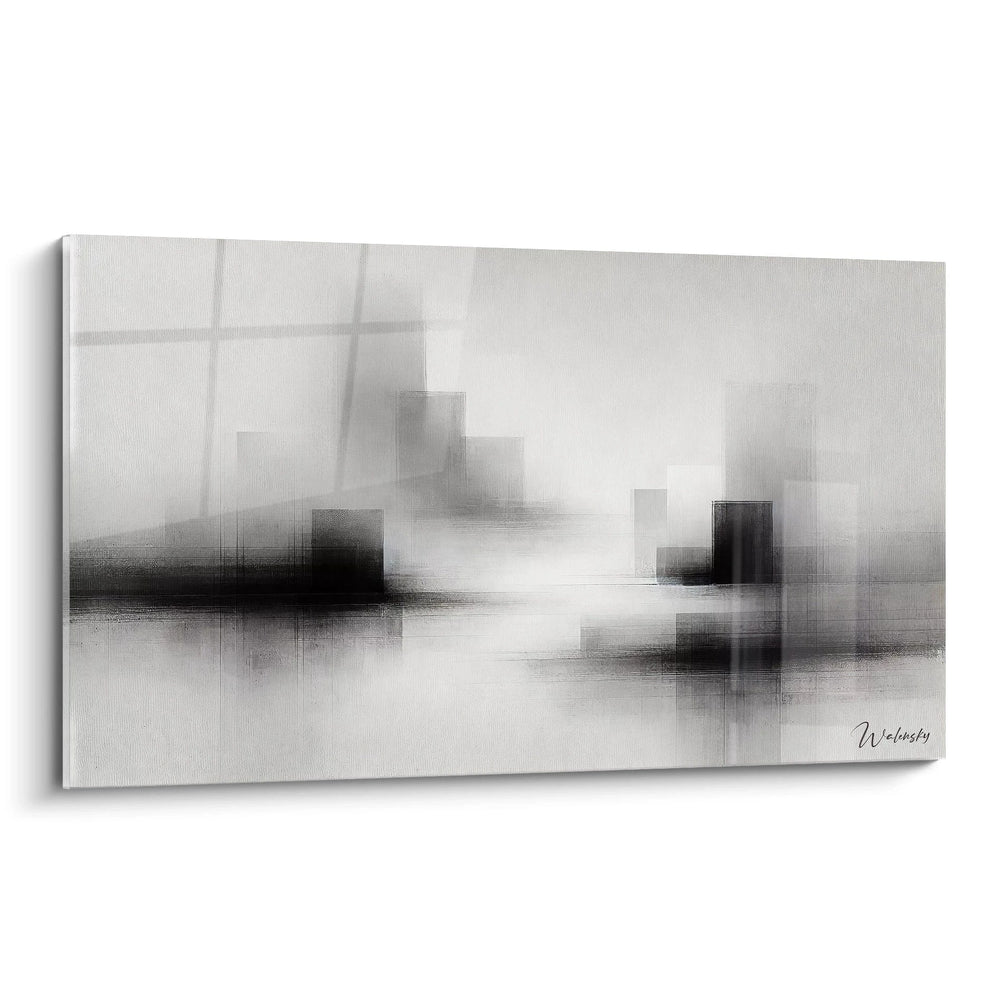 Ce tableau réserve une ambiance apaisante, portée par des formes géométriques discrètes qui naissent puis s’effacent dans un espace immaculé. Chaque regard posé sur cette œuvre minimaliste révèle une profondeur nouvelle, une invitation à ressentir un calme presque surnaturel. Vous ressentez le poids léger du silence urbain, comme si le brouillard emportait avec lui le tumulte des jours pour ne laisser que la pureté des formes.