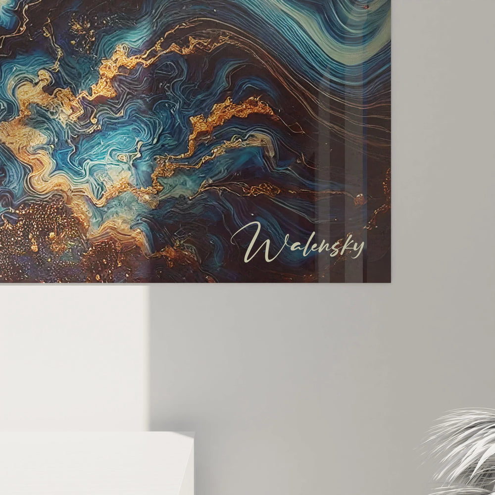 Ce tableau est une invitation à plonger dans l’immensité d’un ciel nocturne mystérieux. Grâce à plusieurs couches de résine époxy délicatement fusionnées à des pigments profonds, il crée une profondeur presque palpable, comme si vous pouviez toucher l’espace lui-même. La surface brillante réfléchit la lumière, faisant danser les nuances de bleu marine et d’or, reproduisant la dynamique envoûtante des nébuleuses.