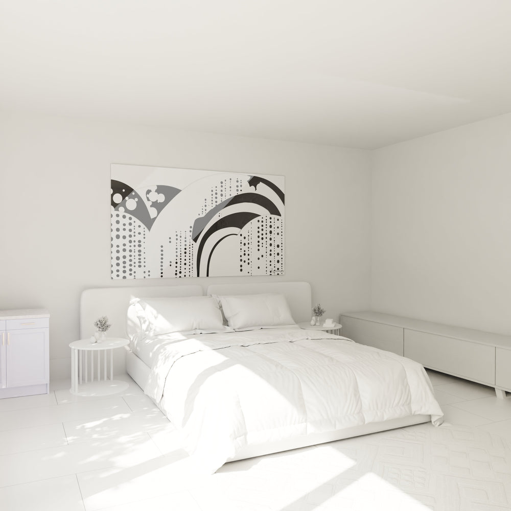 Cette œuvre s'épanouit particulièrement dans des environnements contemporains aux lignes épurées, où sa sophistication minimaliste peut s'exprimer pleinement sans concurrence visuelle. L'éclairage LED indirect, positionné à 30 degrés par rapport à la surface, révèle optimalement les micro-reliefs créés par les points tout en évitant les reflets parasites. Les combinaisons chromatiques complémentaires incluent des tons naturels comme le beige lin, le gris perle ou les verts sourds qui amplifieront l'impact du contraste noir et blanc sans créer de dissonance. L'intégration idéale de ce tableau moderne design nécessite un mur de couleur neutre et un espace de contemplation suffisant pour permettre l'appréciation des variations de distance d'observation, transformant ainsi n'importe quel intérieur en galerie d'art contemporain personnelle.