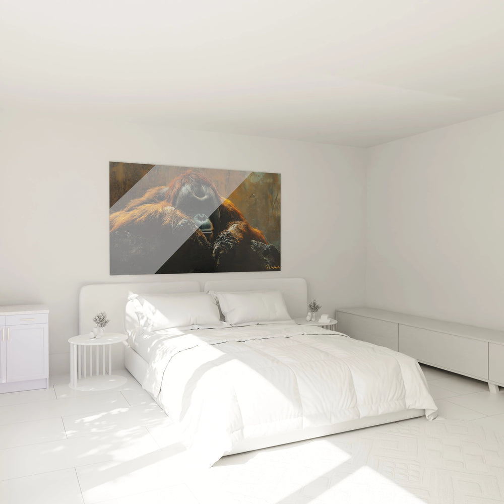 L'harmonie entre ces couleurs naturelles confère au tableau orang-outan une atmosphère à la fois chaleureuse et mélancolique, reflétant parfaitement la dualité de l'animal : puissant mais vulnérable, sauvage mais profondément sensible.