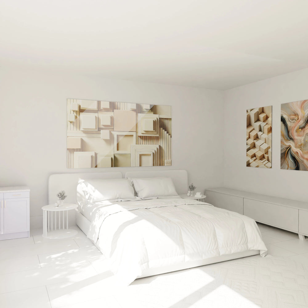 Inspiré par le mouvement minimaliste et l’architecture moderniste, ce tableau incarne une dualité fascinante entre simplicité et complexité. Chaque élément a été pensé pour dialoguer avec l’ensemble, offrant une harmonie visuelle qui évoque aussi bien la stabilité que la découverte infinite des détails. C’est un hommage subtil à la beauté modérée, à l’essence même de l’art géométrique abstrait.