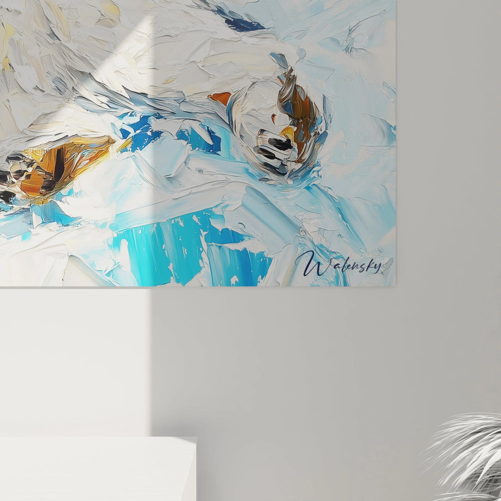 Chaque détail de ce tableau a été soigneusement pensé pour magnifier votre espace, apportant un souffle d’air glacé empreint de noblesse et de calme. Laissez-vous séduire par la douce lumière polaire qui s’en dégage et créez une atmosphère invitant à la rêverie et à la paix intérieure.