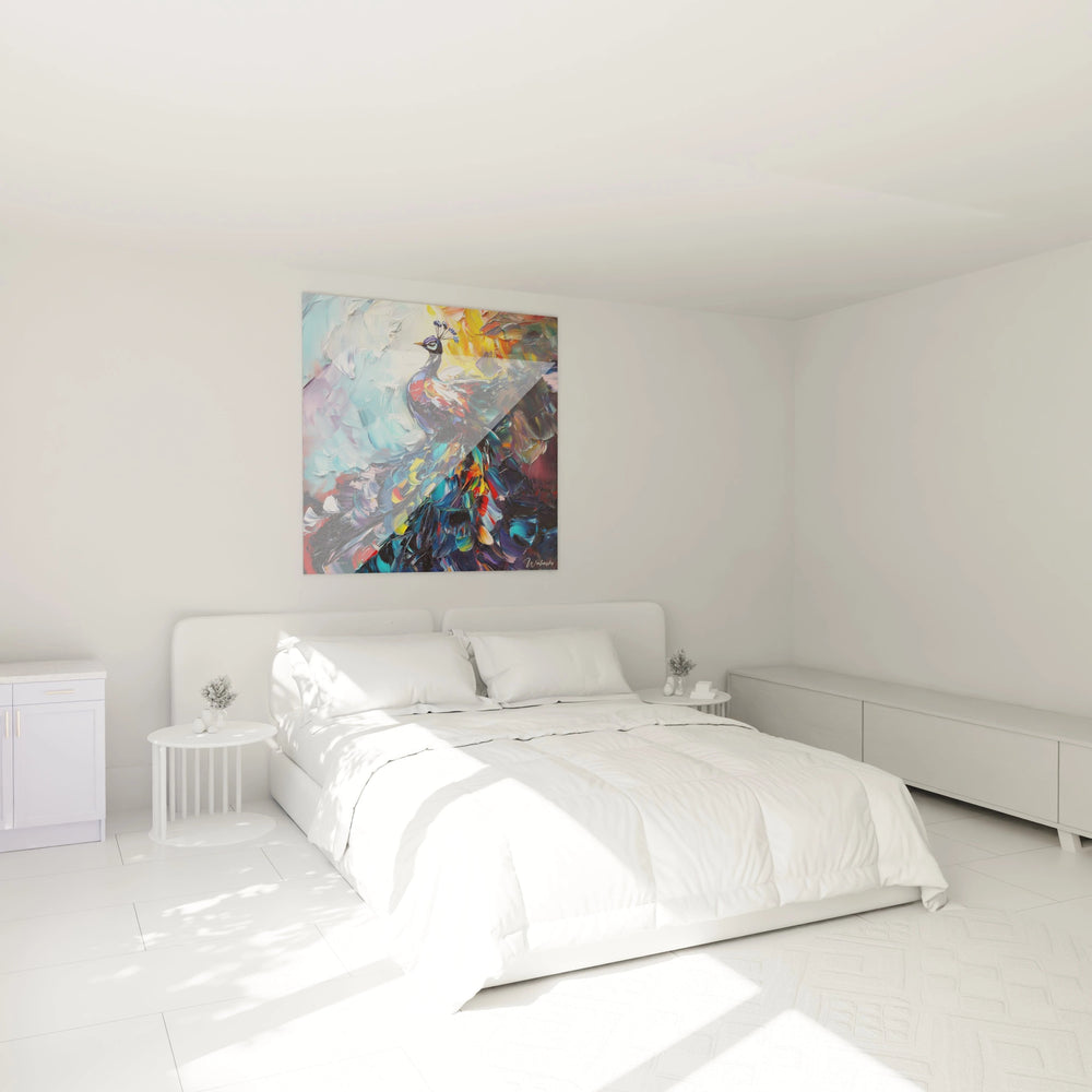 Cette art mural paon génère une émotion intense grâce à ces contrastes thermiques qui évoquent à la fois la noblesse et la passion.