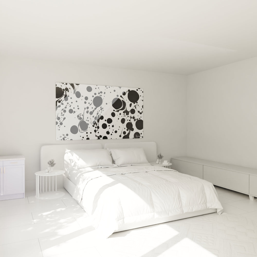 Le style graphique, fluide et vivant, tire sa force du mouvement naturel des particules, qui semblent tourbillonner librement. Cette pièce unique apporte une touche contemporaine, offrant à votre intérieur une signature artistique marquée par l’élégance et la profondeur. Son design monochrome s’harmonise avec des ambiances variées, du minimalisme chic aux intérieurs plus audacieux, tout en restant une source d’inspiration constante.