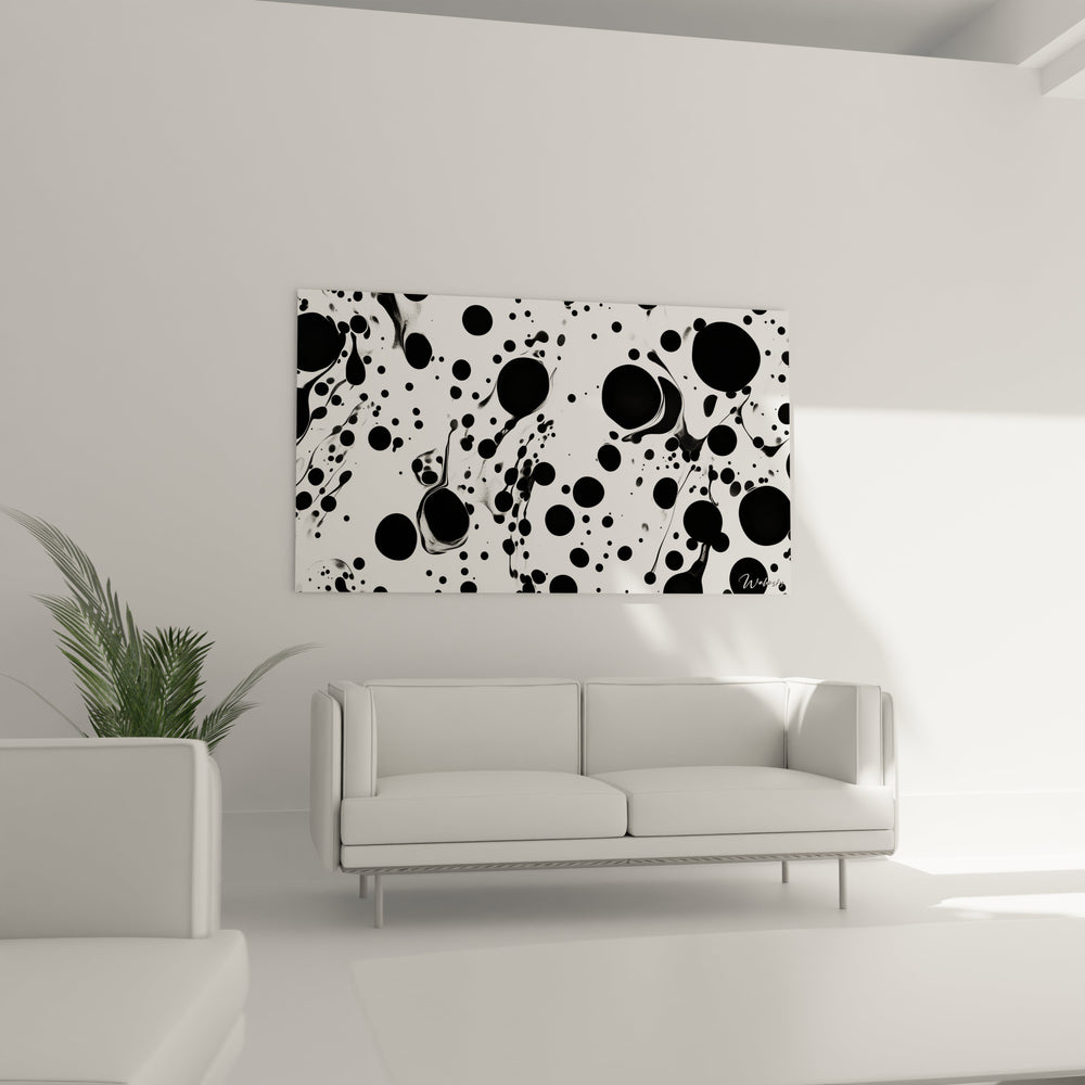 Ce chef-d’œuvre subtil explore le contraste audacieux entre les taches noires et l’espace blanc, créant un dialogue visuel fascinant qui attire instantanément le regard. Placé dans votre salon, votre bureau ou votre entrée, il transforme votre atmosphère en un lieu de réflexion et de sophistication. Vous ressentirez cette harmonie rare où l’ordre rencontre le désordre, la rigueur épouse la spontanéité.