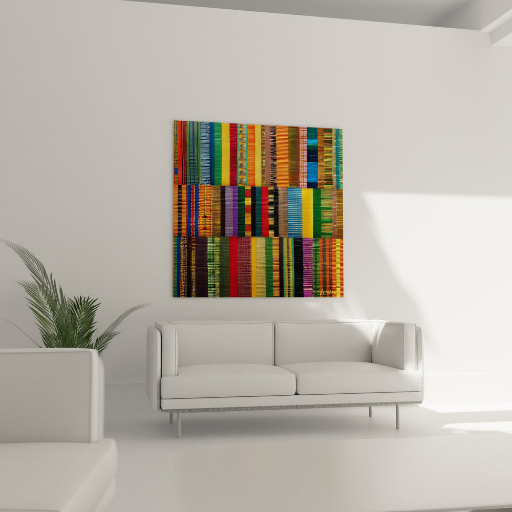 Ajoutez une touche d'élégance et de couleur à votre maison dès aujourd'hui! Faites de ce tableau une pièce maîtresse de votre décoration et laissez le charme des tissus africains transformer votre espace de vie.