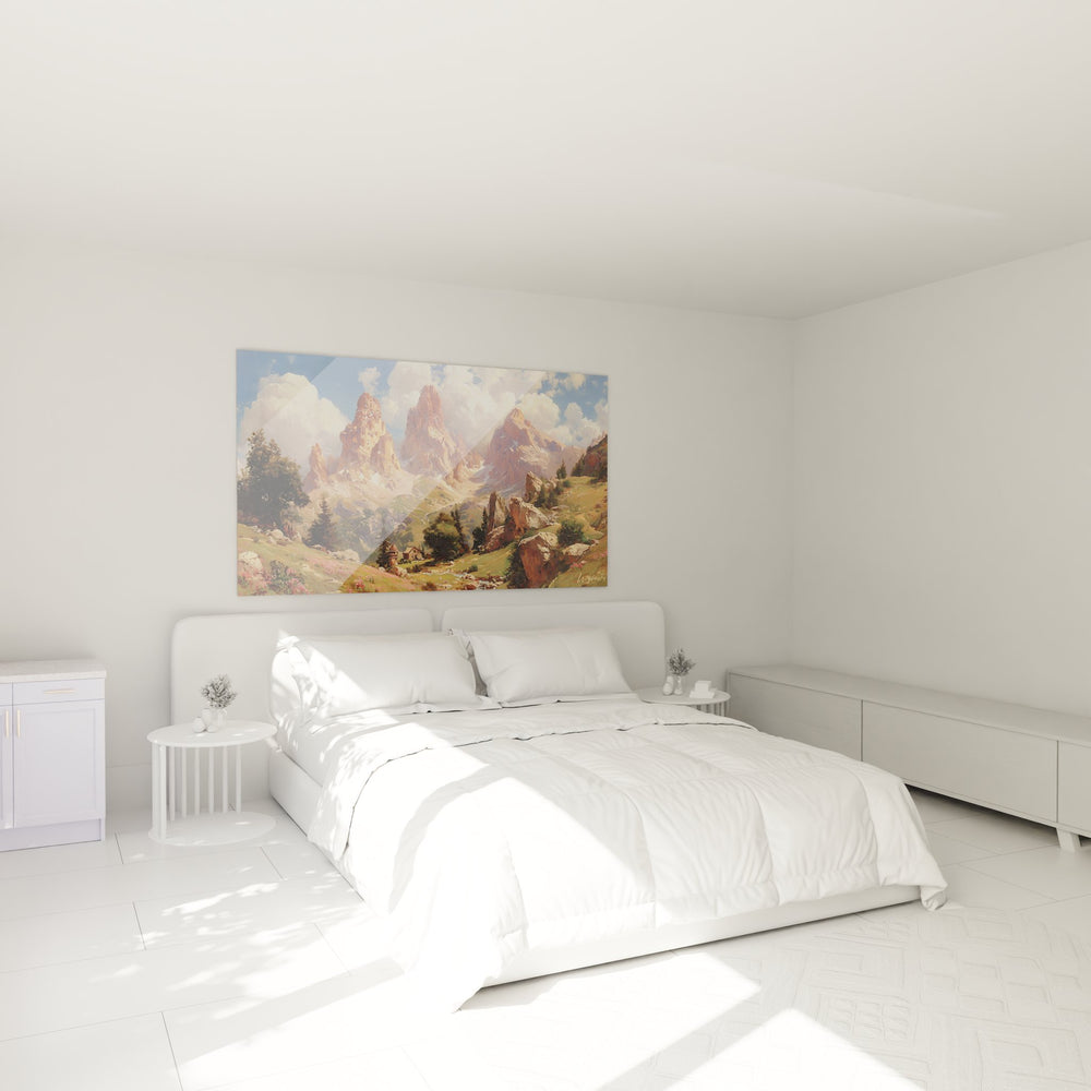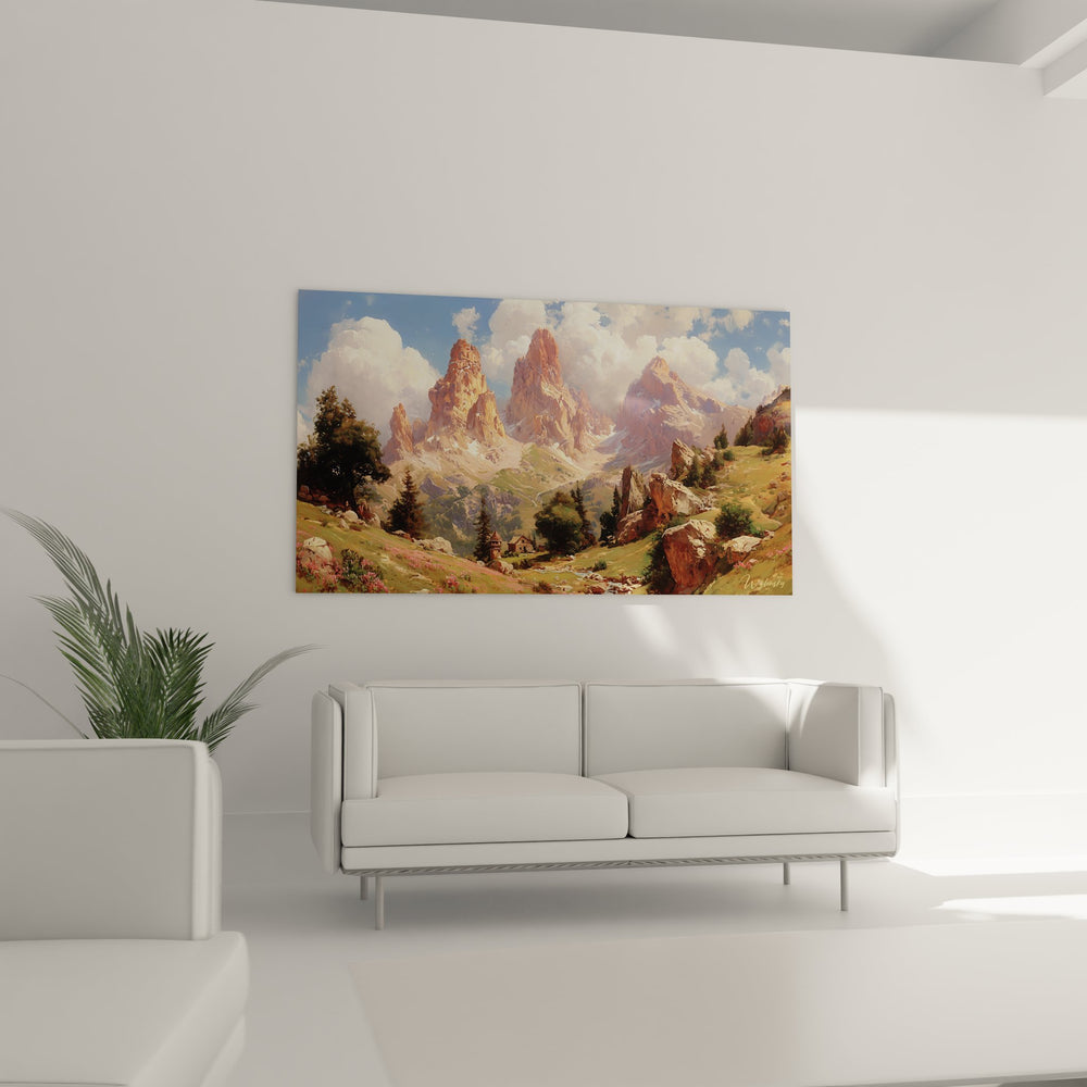 Tags : paysage alpin, dolomites, vallée montagnarde, art montagne, décoration alpine