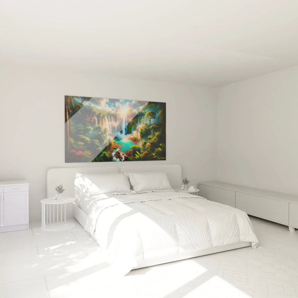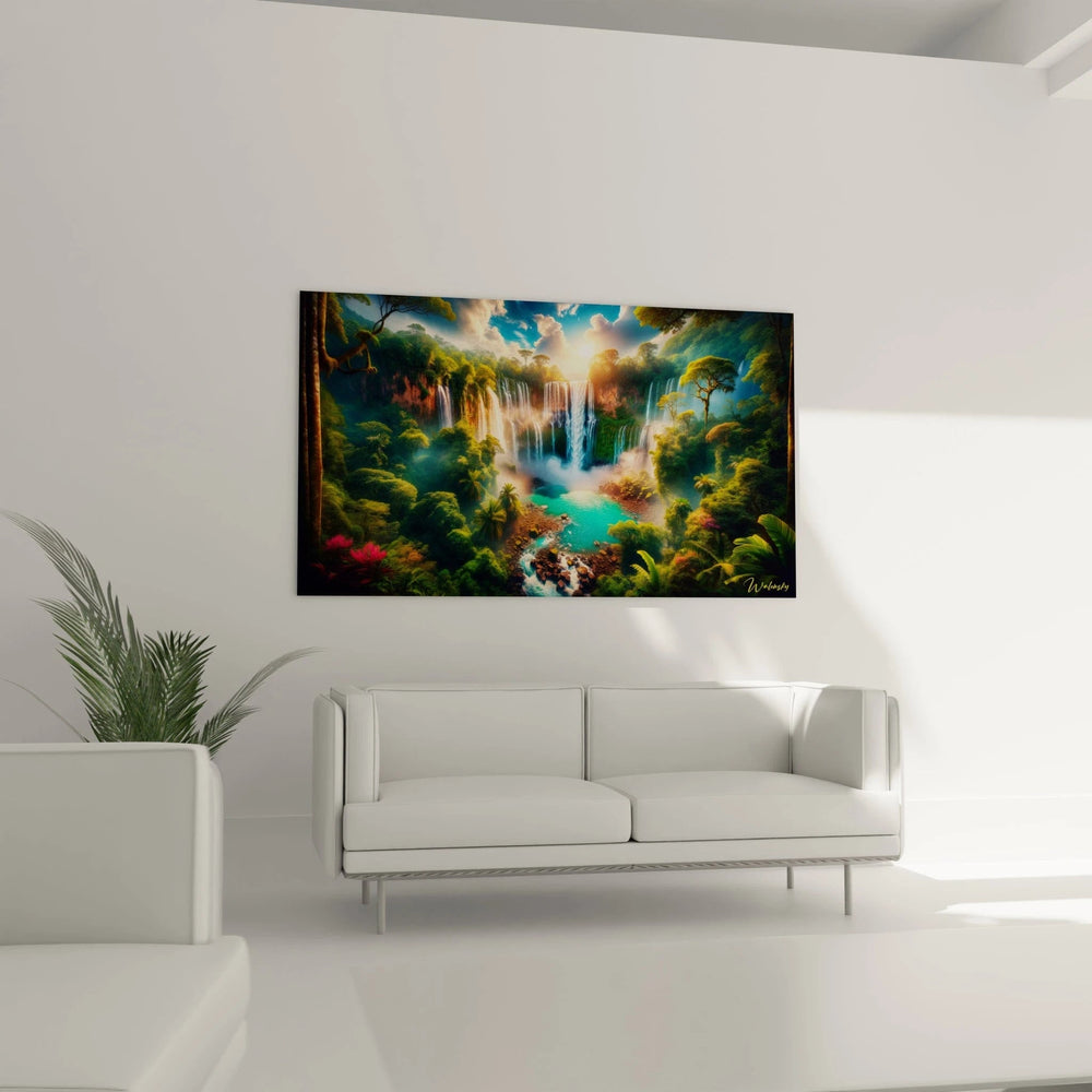 Imaginez un instant suspendu, où la lumière dorée du matin caresse une cascade aux eaux cristallines, entourée d’une forêt émeraude si vivante qu’on peut presque sentir la fraîcheur de l’air humide et l’odeur apaisante des feuilles. Le Tableau Aube Féerique sur Paradis Aquatique - Édition Paysage vous offre cette immersion magique, un véritable sanctuaire visuel qui transforme votre intérieur en un refuge d’harmonie et de sérénité.