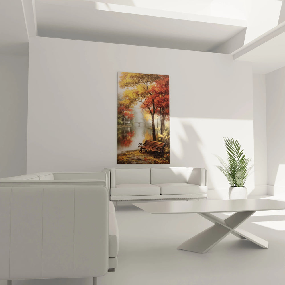 Commandez votre Tableau Paysage Banc Solitaire - édition automne aujourd'hui et embellissez votre monde avec cette touche de nature luxueuse!