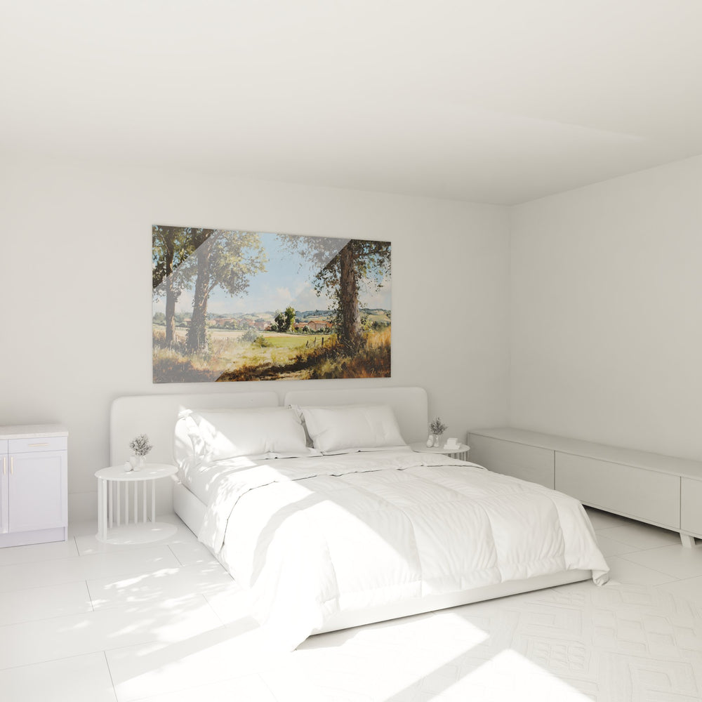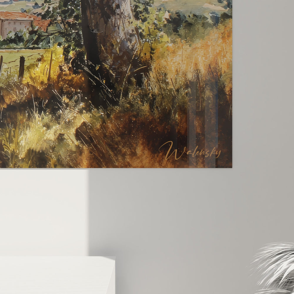 Tags : paysage campagnard, village rural, tableau campagne, art mural nature, décoration rustique