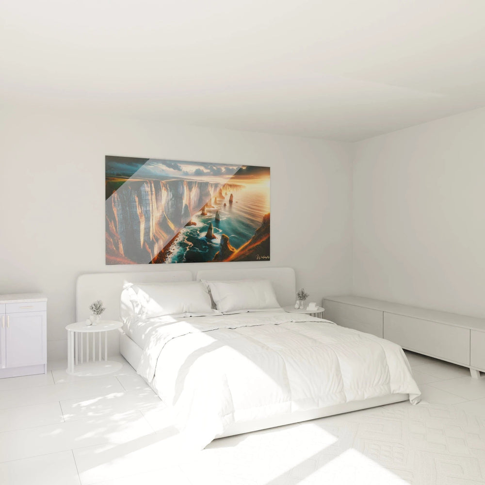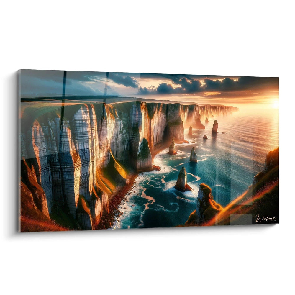 Inspiré des célèbres falaises normandes et du romantisme artistique, ce tableau célèbre la beauté infinie des éléments. Chaque détail a été travaillé pour que la lumière et les ombres enchantent votre regard, suscitant un sentiment d’humilité devant la puissance de la nature et une sensation d’évasion bienvenue dans votre quotidien.
