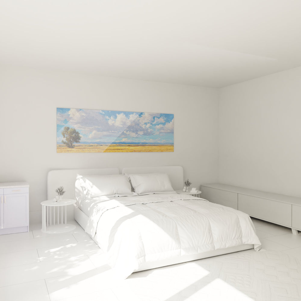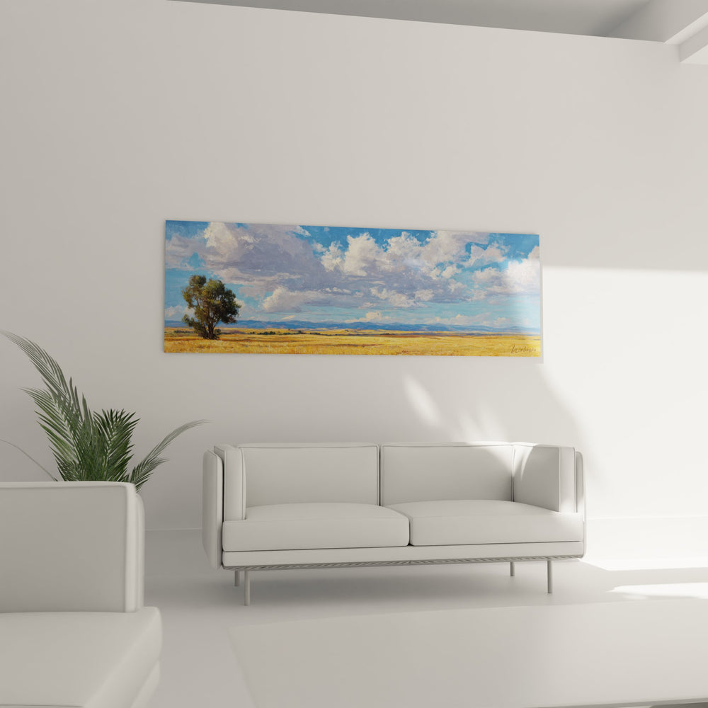 Chaque fois que vous poserez vos yeux sur cette œuvre, vous ressentirez un sentiment de calme et d’apaisement. Imaginez-vous en train de vous détendre, un bon livre à la main, avec cette prairie dorée en fond comme un doux souvenir de la nature.