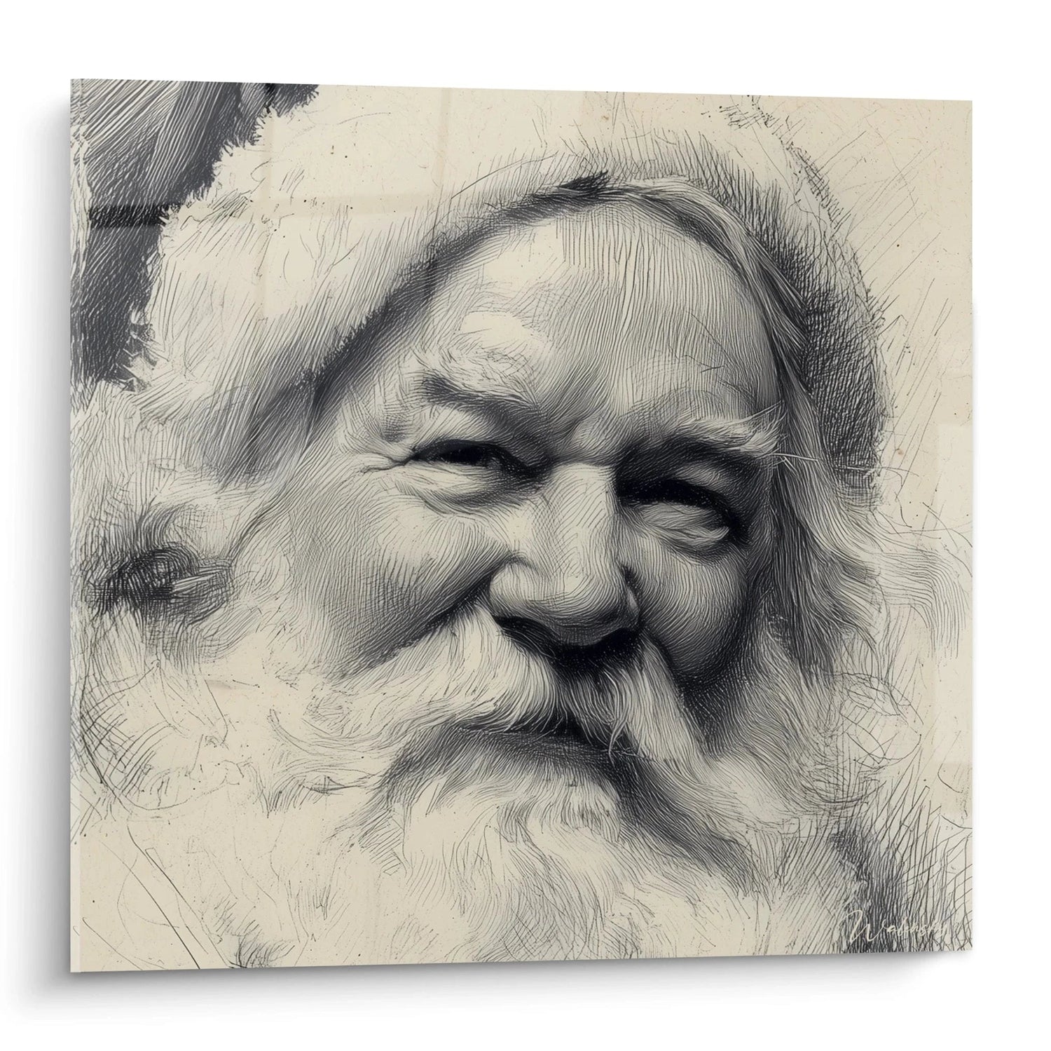 Cette œuvre exceptionnelle présente le Père Noël dans toute sa splendeur traditionnelle, avec une barbe fournie magistralement rendue et un sourire empreint de malice bienveillante. Le tableau père noël technique gravure révèle un savoir-faire artistique remarquable dans le traitement des volumes et des textures. Chaque ride d'expression témoigne de la longévité et de la sagesse de ce personnage légendaire. Les yeux pétillants, à demi-fermés dans un sourire complice, transmettent instantanément l'esprit de Noël. Cette art mural père noël capture l'essence même de la figure paternelle et généreuse qui incarne les fêtes de fin d'année.