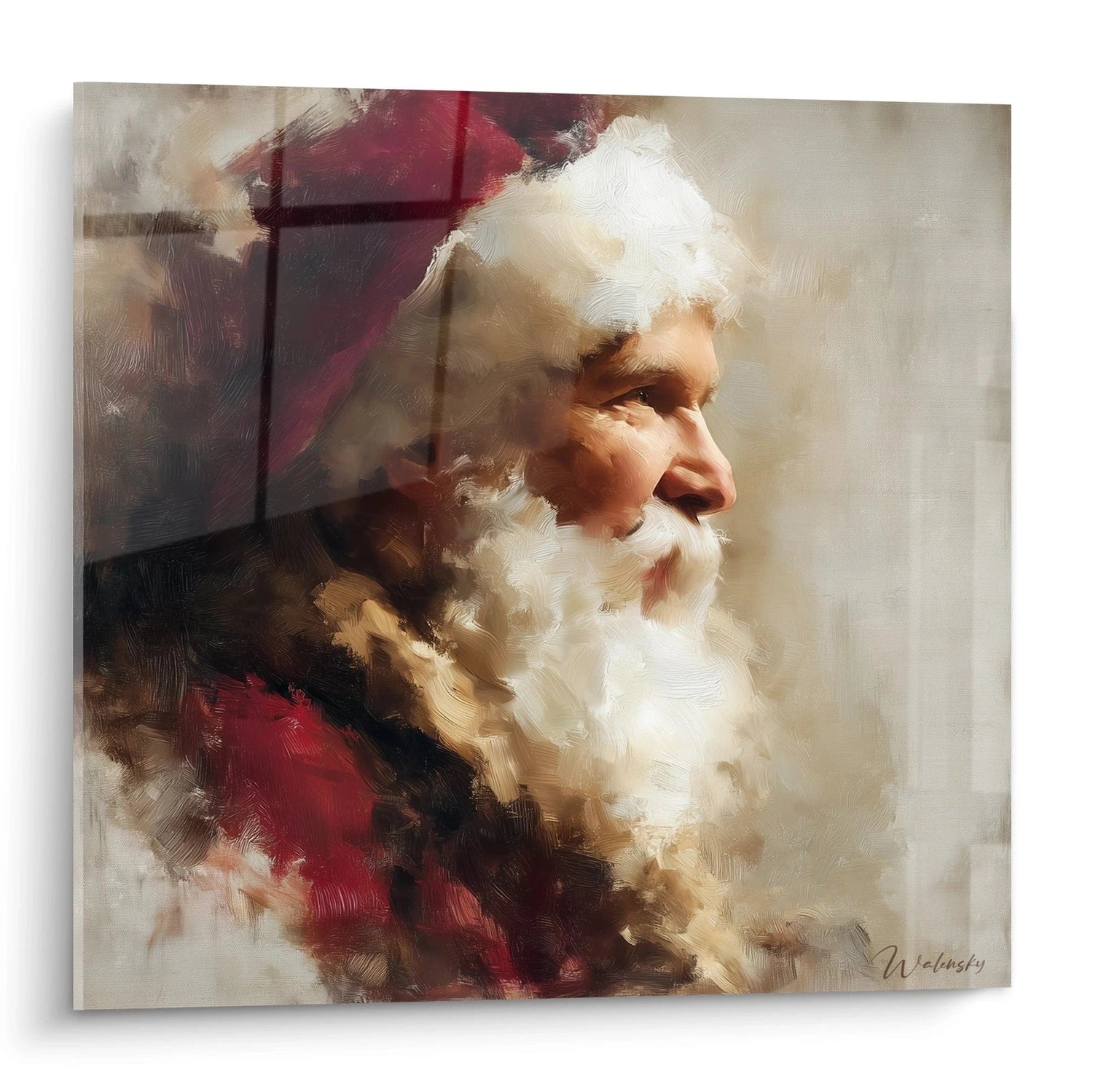 Ce tableau Père Noël se distingue par son approche humaniste du personnage mythique, transformant l'icône en un portrait psychologique profond. L'expression faciale capture un moment de sérénité contemplative, loin des représentations commerciales habituelles. Cette décoration murale Père Noël authentique révèle la personnalité sage et bienveillante du personnage légendaire. Les détails uniques incluent le traitement particulier des rides d'expression qui témoignent d'une vie riche en sourires et en générosité. Le regard dirigé vers la droite suggère une vision tournée vers l'avenir et l'espoir. Ce tableau Père Noël personnalité unique transcende la simple représentation pour devenir un véritable portrait de caractère. L'artiste a su capter l'essence spirituelle du personnage, créant une œuvre intemporelle qui dépasse les codes décoratifs traditionnels.