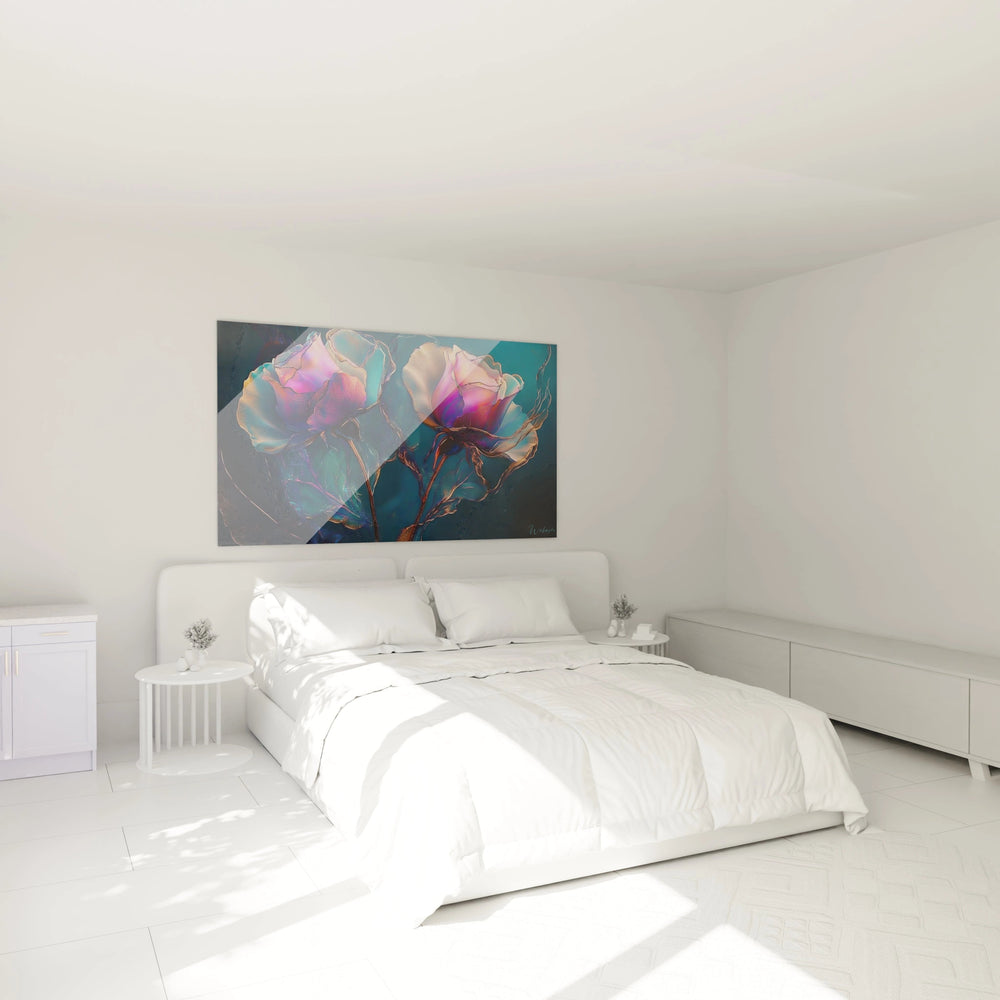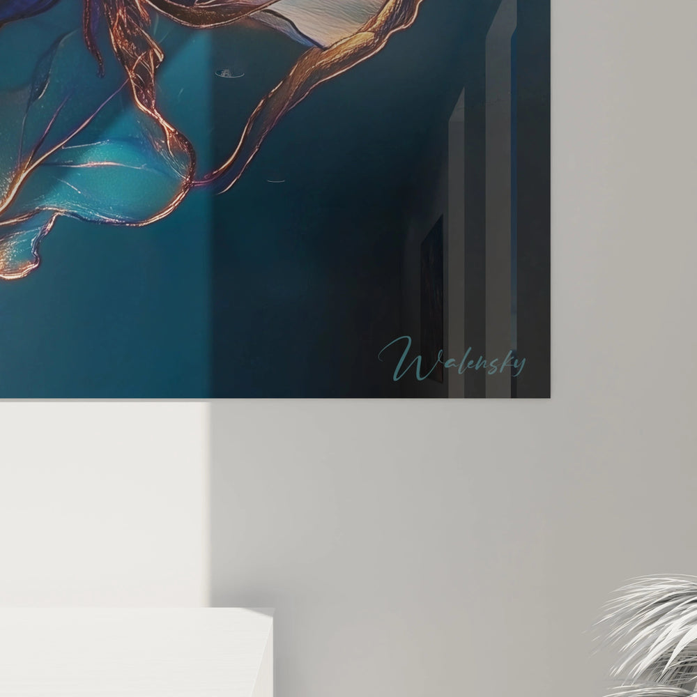 Chaque pétale semble délicatement sculpté par la lumière, donnant vie à une danse silencieuse et mystérieuse. Ce tableau invite à la contemplation, enveloppant votre pièce d’une aura apaisante et presque méditative. Laissez-vous envoûter par ses harmonies de bleu, violet et rose, tout en ressentant la douceur et la force fragile que symbolisent ces fleurs éthérées.