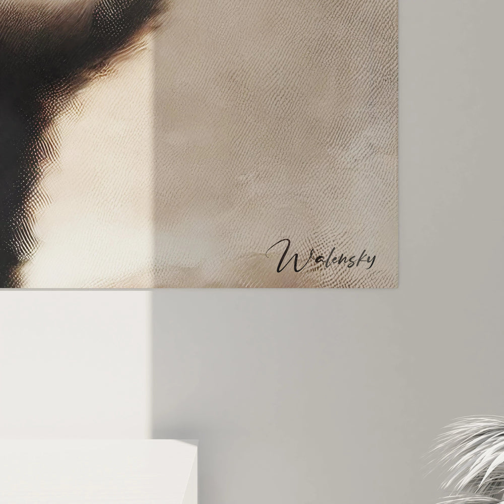 Imaginé à partir d’un moment de complicité avec un jeune chat, ce tableau incarne la vulnérabilité et la pureté de la vie naissante. Vous ressentirez la caresse invisible que semble attendre ce regard curieux, une invitation intime à la douceur et à la protection. La silhouette délicate du chaton se détache dans une ambiance aux nuances beiges et marron, exaltant la sensation d’un cocon de calme où chaque détail s’épanouit avec discrétion.