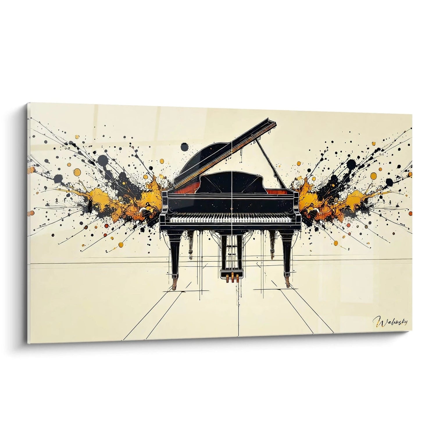 Imaginez un instant suspendu oĂč un piano devient le cĆur battant dâune explosion crĂ©ative. Ce tableau transcende les formes pour rĂ©vĂ©ler la puissance Ă©motionnelle de lâinstrument : un Ă©quilibre parfait entre le contrĂŽle rigoureux des touches et la libertĂ© sauvage des Ă©clats de couleurs. Les nuances profondes de noir fusionnent avec la chaleur Ă©clatante de lâorange et la lumiĂšre vive du jaune, crĂ©ant une palette qui Ă©voque Ă la fois intensitĂ©, passion, et rayonnement.