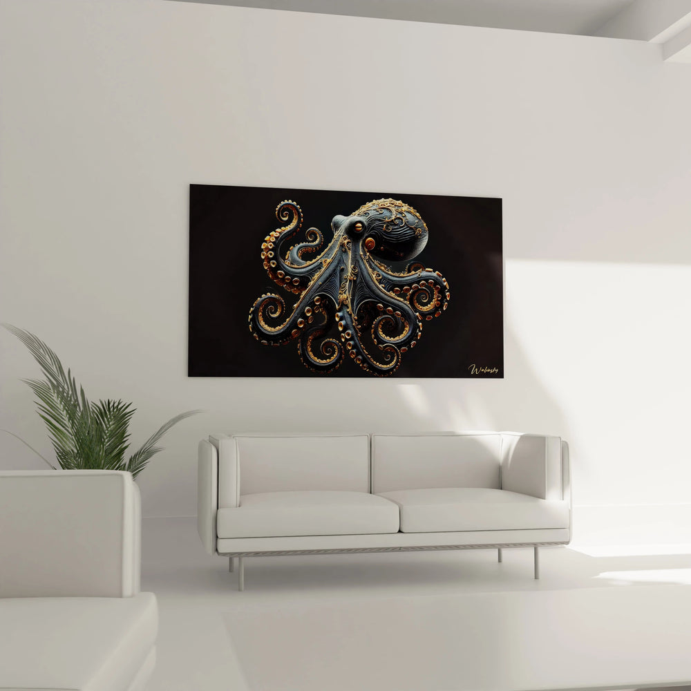 Imaginez une scène où la grandeur mystérieuse des profondeurs marines s’invite dans votre espace de vie. Le Tableau Pieuvre Royale est bien plus qu’une simple décoration : c'est une célébration vibrante de l’élégance et de la puissance d’une créature fascinante, le poulpe. Chaque tentacule, délicatement orné de reflets dorés, évoque un équilibre parfait entre force majestueuse et grâce fluide, transformant cette œuvre en une véritable pièce de prestige.