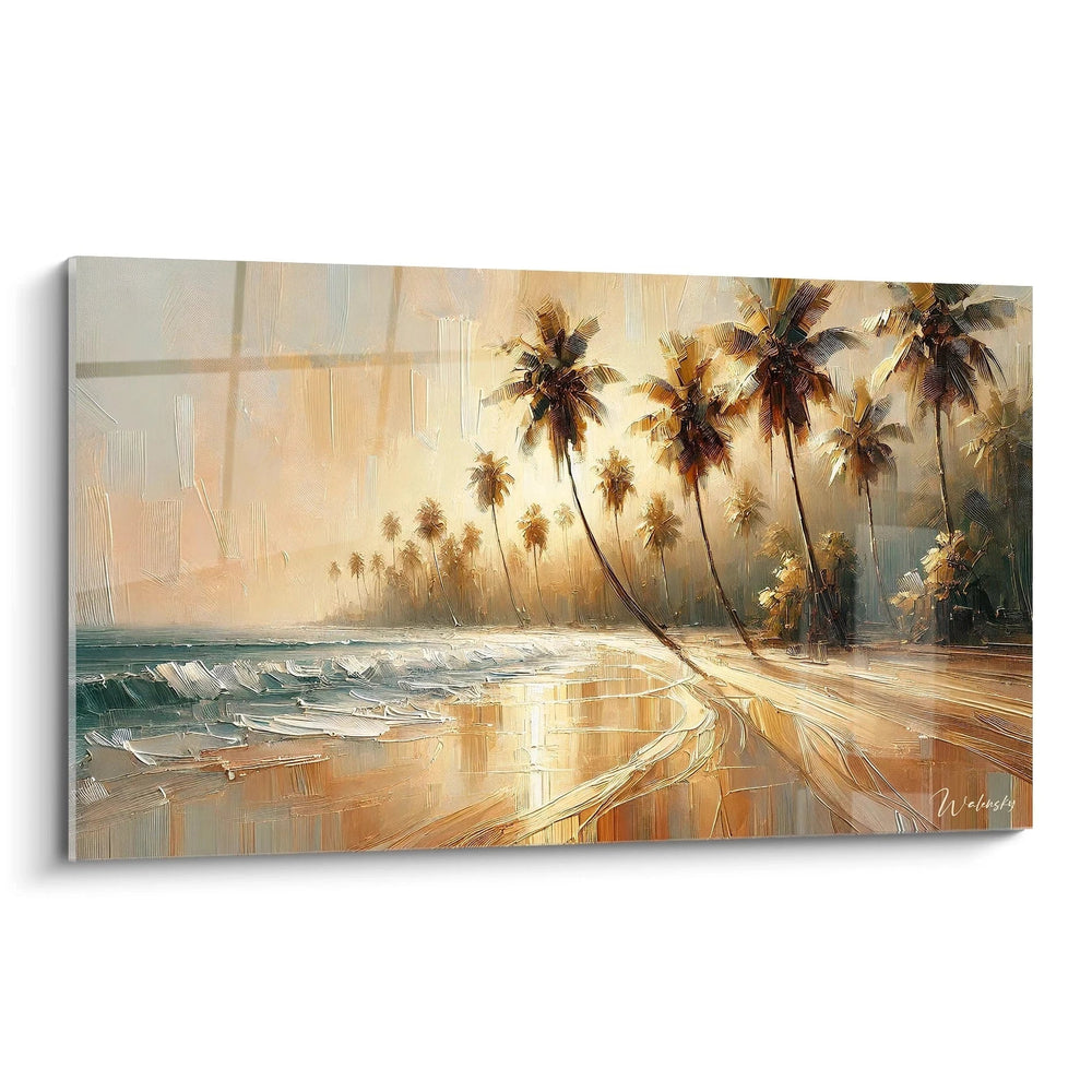 Imaginez un instant suspendu où la douceur dorée du crépuscule enveloppe doucement une plage tropicale, baignée par la caresse légère du vent marin. Le Tableau Plénitude au Paradis - Édition Plage Paysage vous plonge dans ce cadre d’exception, où le sable chaud se mêle aux silhouettes élégantes des palmiers, dessinant une scène empreinte de sérénité absolue.