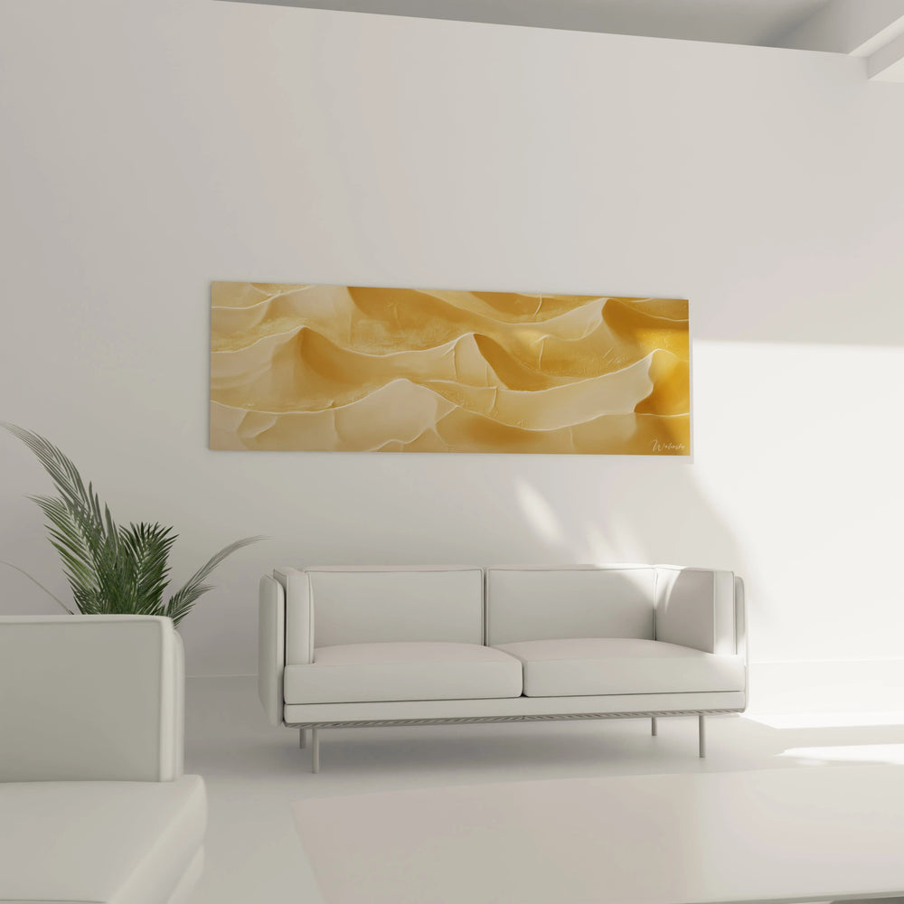 Offrez à votre intérieur une touche de raffinement en accueillant le Tableau Plis Sensuels Miel - Édition Texturé Abstrait. Ce chef-d'œuvre contemporain transforme vos murs en une scène d’élégance sensuelle où la texture devient langage et où chaque repli doré évoque une douce caresse visuelle.