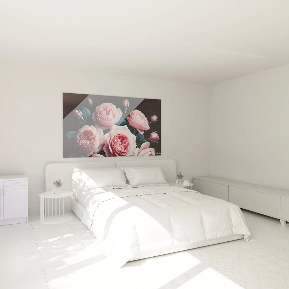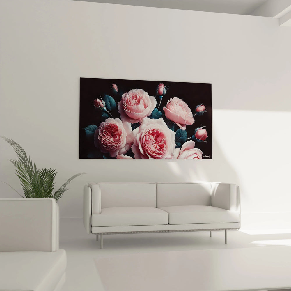 Chaque détail de ce tableau a été pensé pour capturer la complexité et la finesse des roses, ces fleurs symboles d’amour, de tendresse et de force intemporelle. Les tons rosés, bercés par des ombres profondes, créent une harmonie visuelle saisissante qui attire irrésistiblement l’œil et apaise l’âme. On ressent presque la texture veloutée des pétales, leur fraîcheur, et cette sensation unique d’être enveloppé par la nature elle-même.