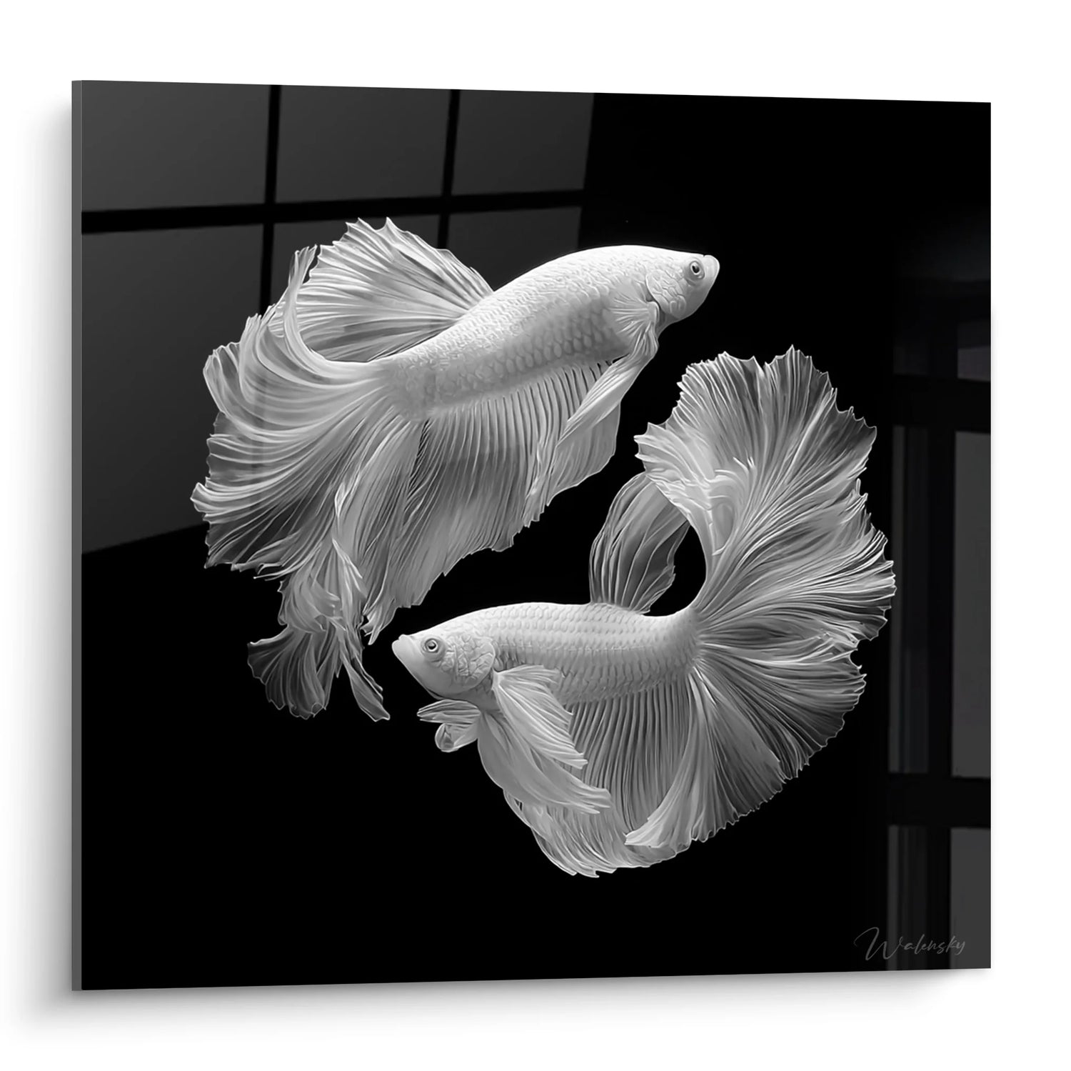 Tableau Poissons Combattants - Danse Aquatique - Edition animaux noir et blanc
