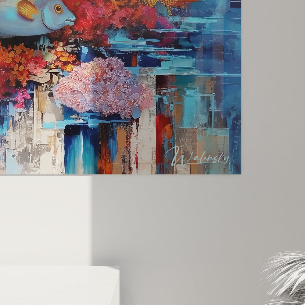 Tags : tableau poissons tropicaux, art mural aquatique, décoration marine, peinture corail, tableau océan moderne