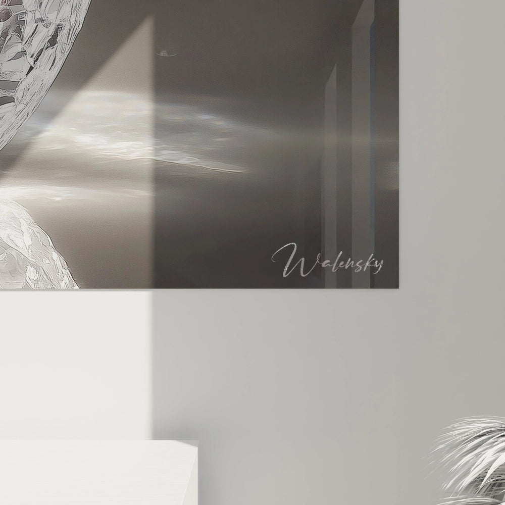 Placer ce tableau chez vous, c’est inviter une ambiance à la fois sophistiquée et énigmatique. La lumière joue avec les surfaces pour produire des éclats chatoyants qui donnent vie à l’œuvre, tandis que l’impression de transparence ajoute une dimension presque onirique à votre espace. Que ce soit en cuisine, dans une salle à manger ou un salon contemporain, cette pièce s'impose comme un élément de conversation, éveillant la curiosité et la réflexion.