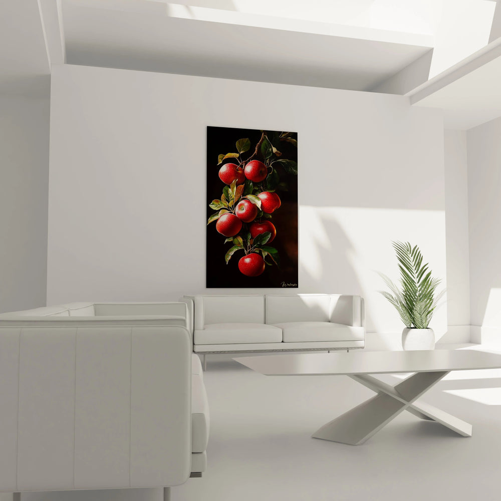Laissez-vous transporter au milieu dâun verger tranquille, oĂč lâair est chargĂ© du parfum sucrĂ© des pommes mĂ»res et de la fraĂźcheur des feuilles encore perlĂ©es de rosĂ©e. Ce tableau ne se contente pas dâhabiller vos murs : il crĂ©e une atmosphĂšre chaleureuse et apaisante, propice Ă la dĂ©tente et Ă la contemplation. La lumiĂšre joue sur les textures, rĂ©vĂ©lant la rugositĂ© dĂ©licate des fruits et la douceur feutrĂ©e du feuillage, rendant cette scĂšne incroyablement vivante et inspirante.