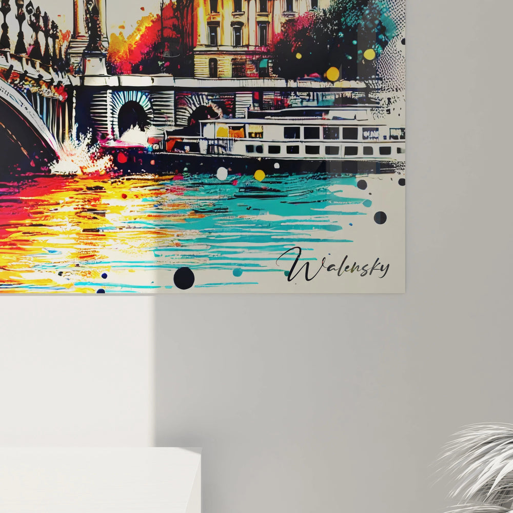 Imaginez-vous face à une œuvre qui transcende le temps, mêlant avec élégance la majesté historique du Pont Alexandre III à une explosion contemporaine de couleurs et de lumière. Ce tableau exclusif capture toute la splendeur et la vitalité de ce monument parisien, emblème du raffinement et de l’art de vivre à la française.