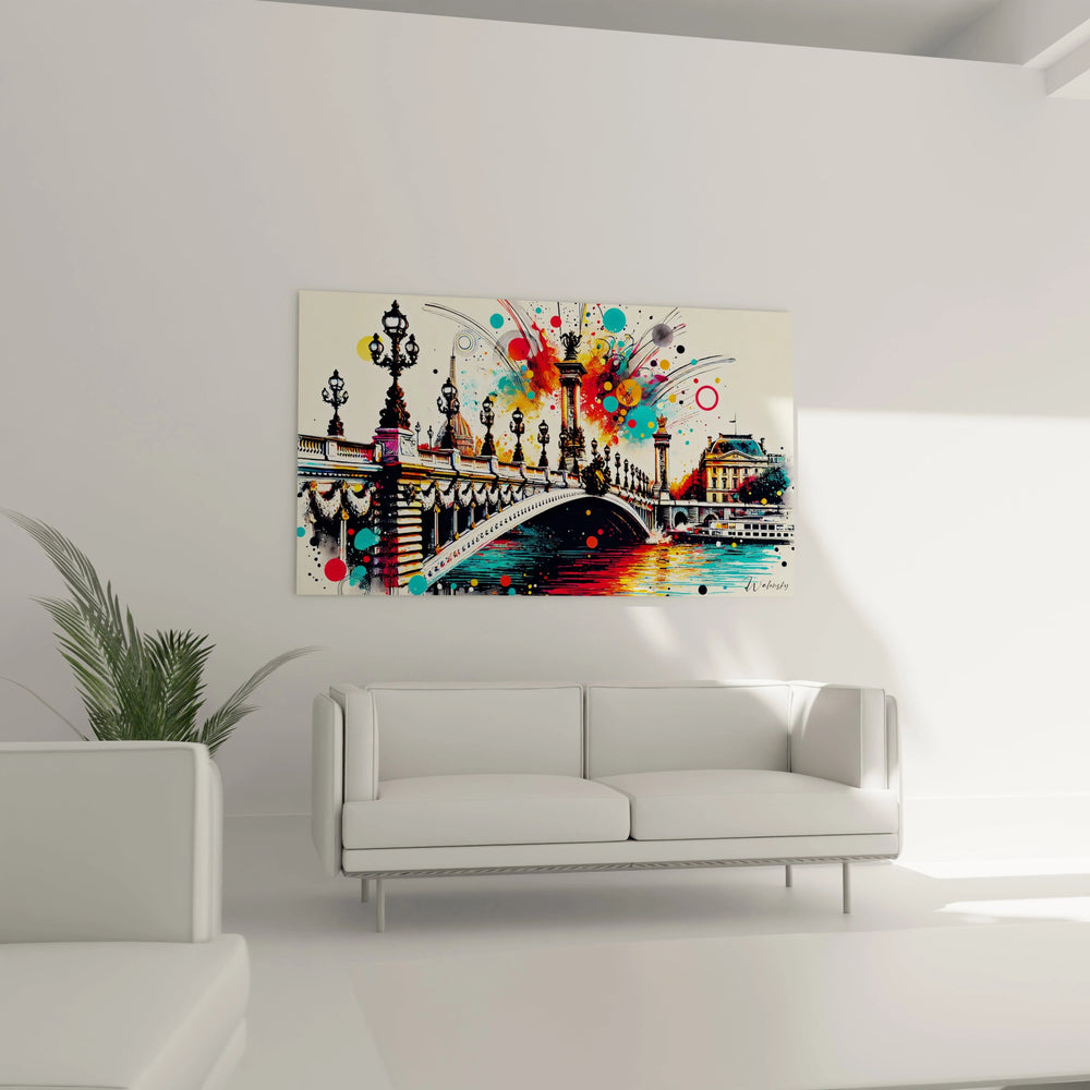 Laissez ce tableau Pont Alexandre III N°1 devenir la pièce maîtresse de votre décoration, celle qui captivera vos invités et éveillera vos émotions à chaque regard. Apportez dès maintenant une touche d’élégance parisienne et d’énergie artistique à votre espace de vie.