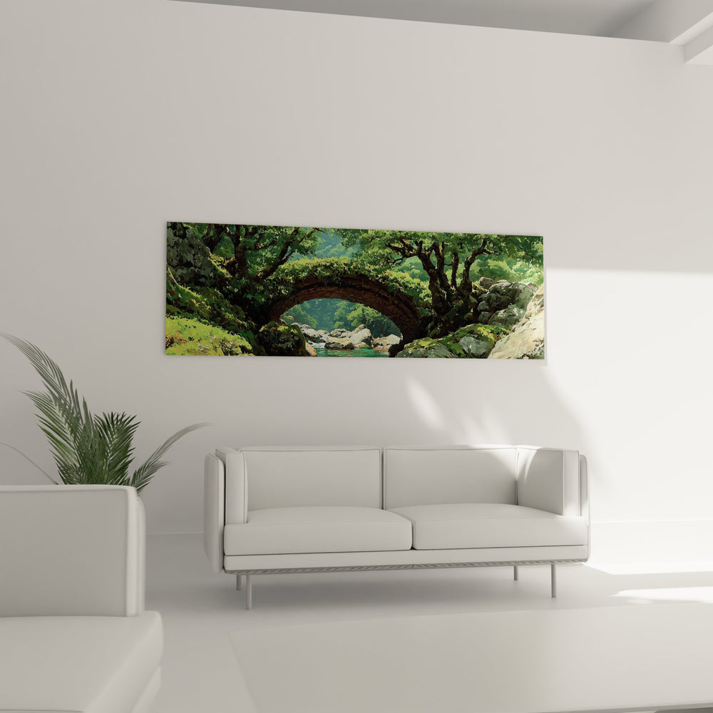 Tags : tableau pont forêt, décoration nature, art paysage forestier, tableau mural vert, décoration zen