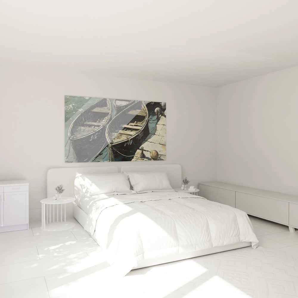 Imaginez-vous au bord de l’eau, l’air marin caressant votre peau, le clapotis délicat s’entremêlant avec le parfum salin et boisé ambiant. Ce tableau capture cette sensation unique grâce à une représentation semi-réaliste où les textures du bois vieilli et des cordages usés prennent vie sous vos yeux. Il témoigne d’un monde où chaque bateau raconte silencieusement les récits des départs à l’aube, des retours au crépuscule et des instants suspendus entre deux vagues.