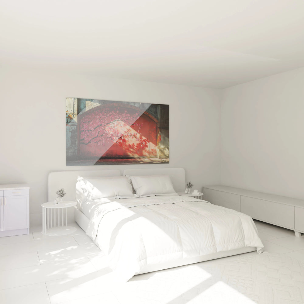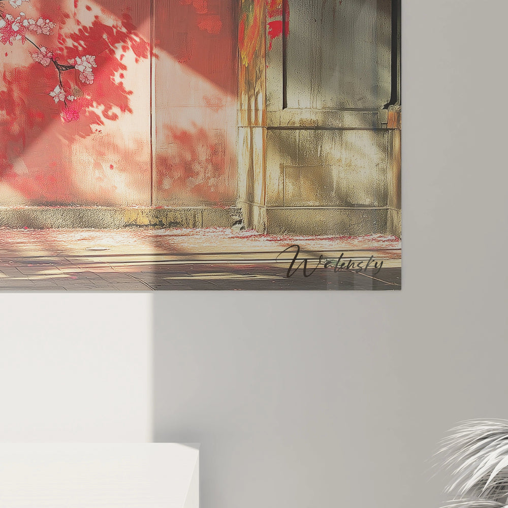 Imaginez un instant la fusion parfaite entre l'urbanité vibrante et la délicatesse éphémère de la nature : voici ce que vous offre le Tableau Porte Sacrée. Cette création unique capte la lumière matinale filtrant à travers un cerisier en fleurs, projetant sur un ancien portail des jeux d’ombre et de lumière qui racontent une histoire d'équilibre entre la force brute de la ville et la fragilité de la vie.