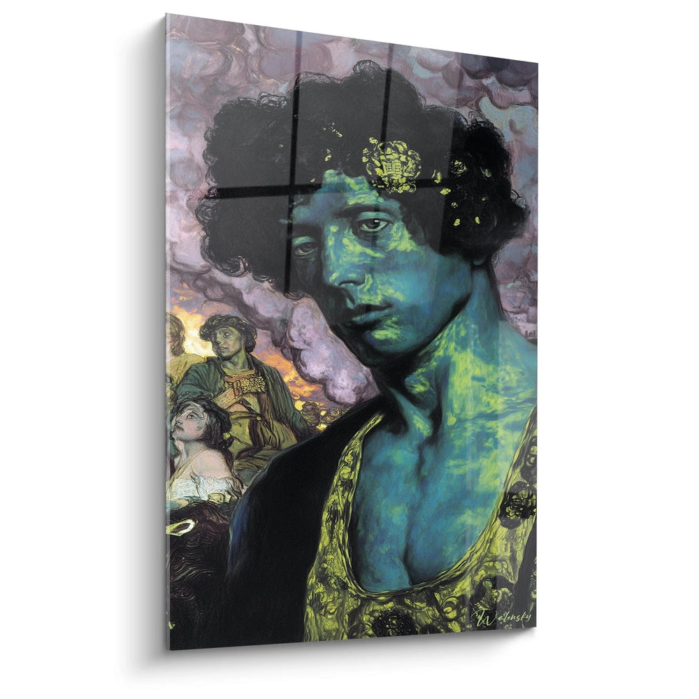 L'originalité de cette œuvre réside dans sa capacité à transformer un genre classique en expérience visuelle contemporaine. L'utilisation non-naturaliste de la couleur pour la carnation crée un effet fantastique qui évoque autant la science-fiction que l'art romantique. Les détails ornementaux des vêtements, finement ciselés, contrastent avec l'audace chromatique du visage. Cette dualité entre tradition et innovation fait de ce tableau portrait original une pièce unique en son genre. L'expression du personnage, à la fois noble et tourmentée, ajoute une dimension psychologique qui dépasse la simple représentation. Cette décoration murale portrait possède une présence magnétique impossible à reproduire ou à imiter.