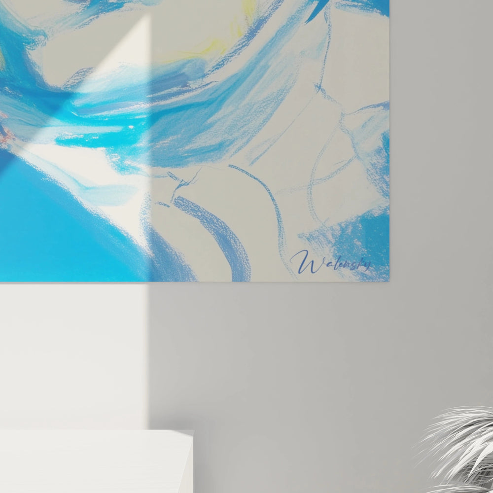Cette œuvre portrait moderne trouvera sa place idéale dans un environnement contemporain aux murs clairs, où ses bleus intenses pourront pleinement s'exprimer. Un éclairage LED blanc neutre mettra en valeur les contrastes chromatiques sans altérer les couleurs originales. L'association avec des meubles aux lignes épurées et des matériaux naturels créera un dialogue harmonieux. Cette décoration murale portrait artistique s'intégrera parfaitement dans un salon moderne, une chambre apaisante ou un bureau créatif, apportant une dimension artistique forte à l'espace.