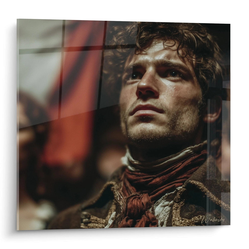 Ce tableau portrait époque historique se distingue par plusieurs éléments visuels remarquables qui en font une œuvre singulière. L'expression du personnage, à la fois mélancolique et noble, capture un moment d'introspection authentique rarement égalé. Le costume d'époque, avec ses détails minutieusement rendus - broderies, plis du tissu, accessoires - témoigne d'une recherche historique approfondie. La qualité de l'éclairage, qui sculpte littéralement les volumes du visage, crée une théâtralité maîtrisée. L'angle de prise de vue, légèrement en contre-plongée, confère une grandeur naturelle au modèle. Cette décoration murale portrait noble possède une intensité dramatique qui la démarque des portraits conventionnels de son style.