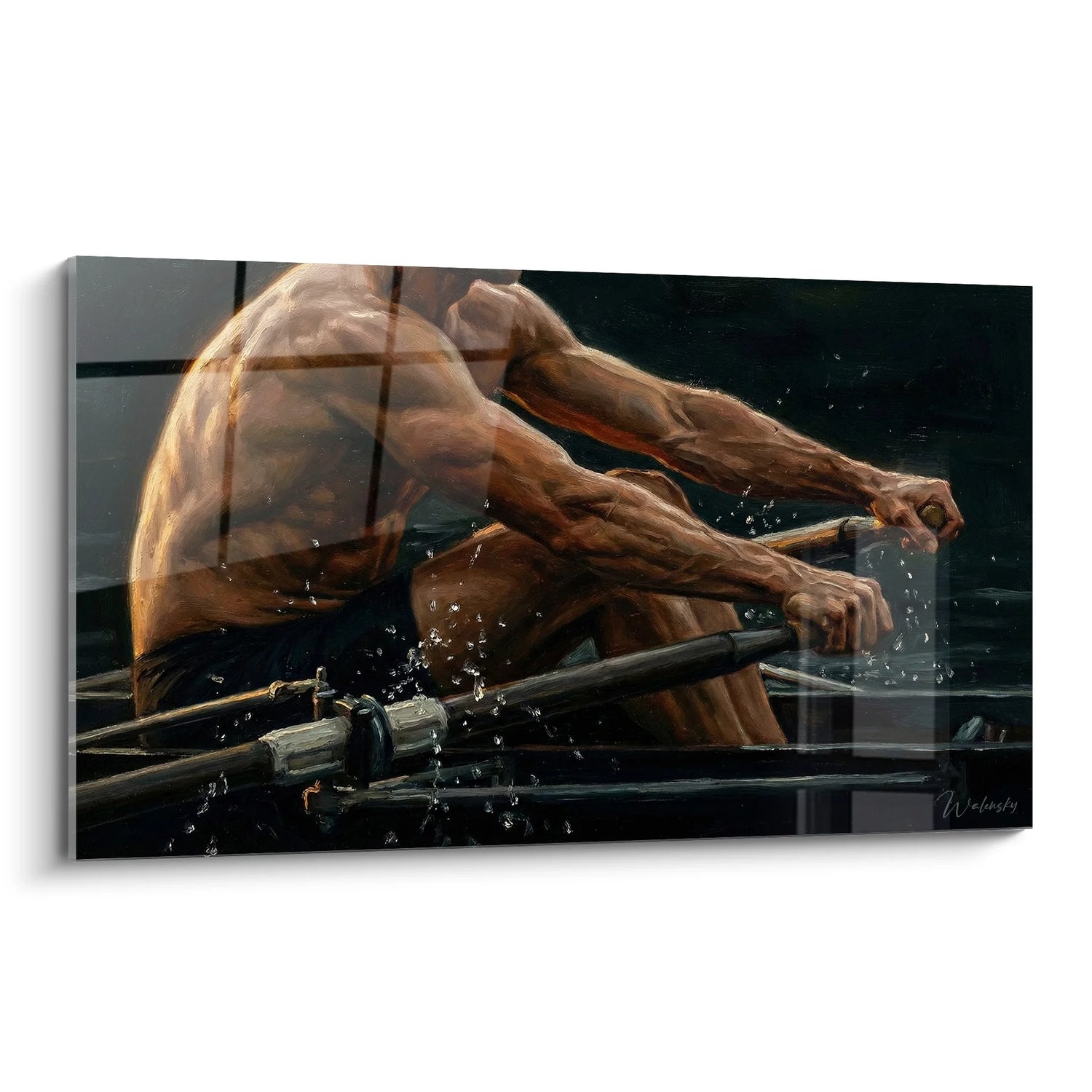 Tags: rameur-effort, tableau-aviron-sport, art-aquatique, peinture-athlete, decoration-sportive