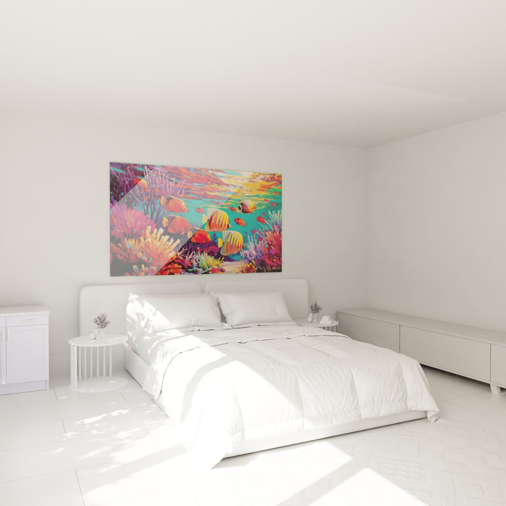Tags : tableau récif corallien, art mural fonds marins, poissons tropicaux, décoration marine, peinture aquatique