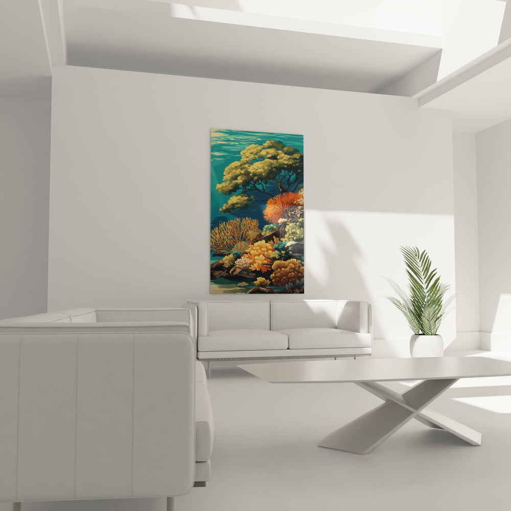 Tags : tableau récif corallien, décoration marine, art sous-marin, coraux colorés, peinture océanique