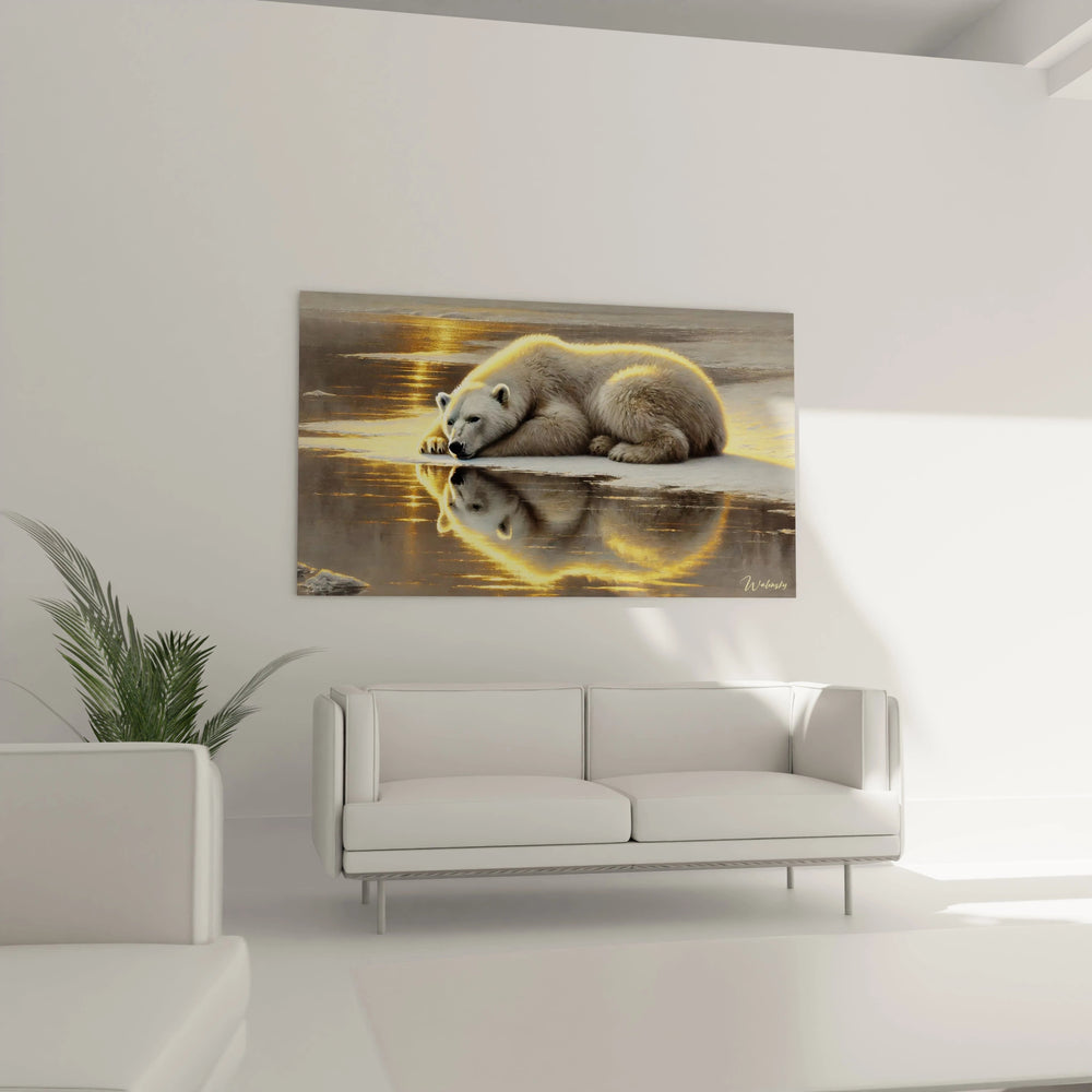 Créé avec une tendresse et un souci du détail remarquables, ce tableau s’inspire des grands maîtres qui savaient donner vie à la lumière. Il transcende la simple image pour offrir un véritable voyage émotionnel, célébrant à la fois la majesté de l’ours polaire et la poésie des reflets glacés. Plus qu’une décoration, c’est une invitation à ressentir la fragilité précieuse de notre planète.