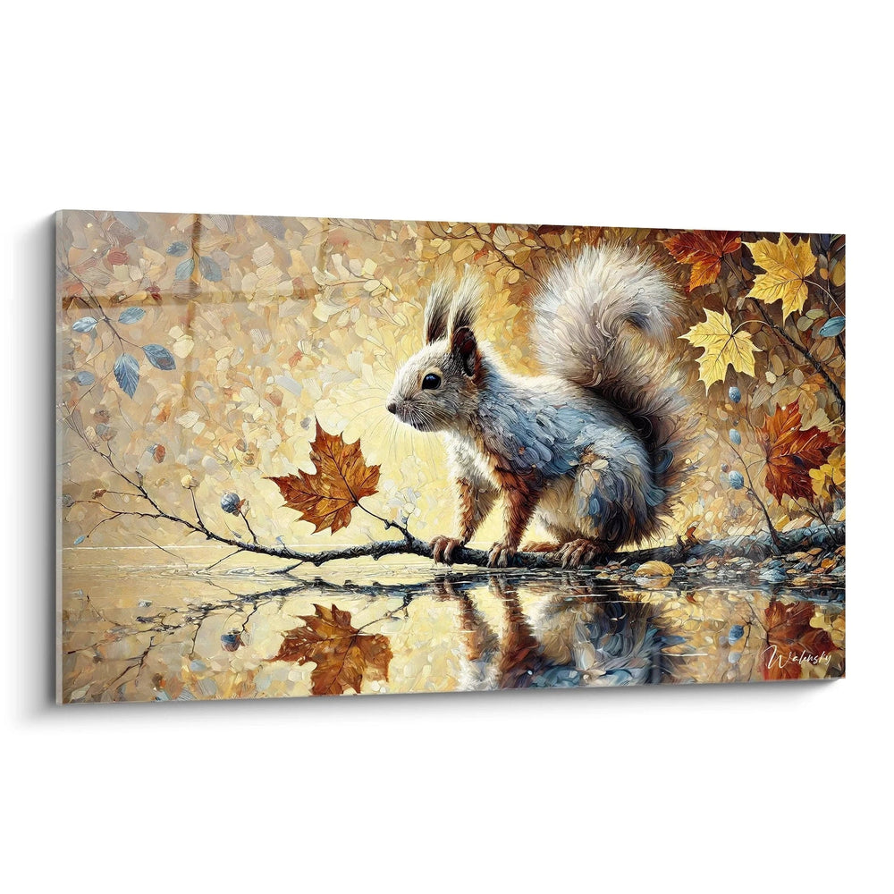 Imaginez un instant suspendu, où la douceur des feuilles dorées caresse l'eau calme d’un étang, révélant la silhouette vive et élégante d’un écureuil. Le Tableau Reflets d'Automne - Édition Écureuil Animaux vous invite à pénétrer cet univers où chaque détail incarne la poésie de l’automne, pour transformer votre intérieur en un havre de paix et de sophistication.