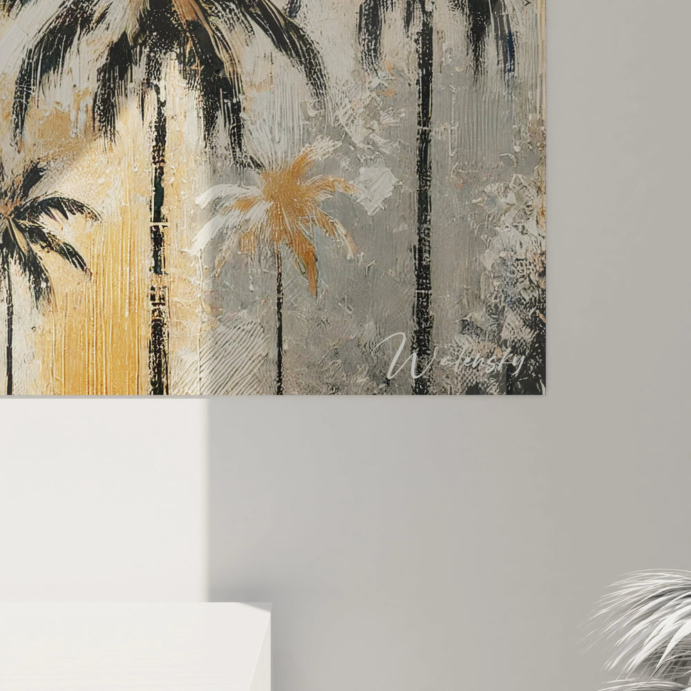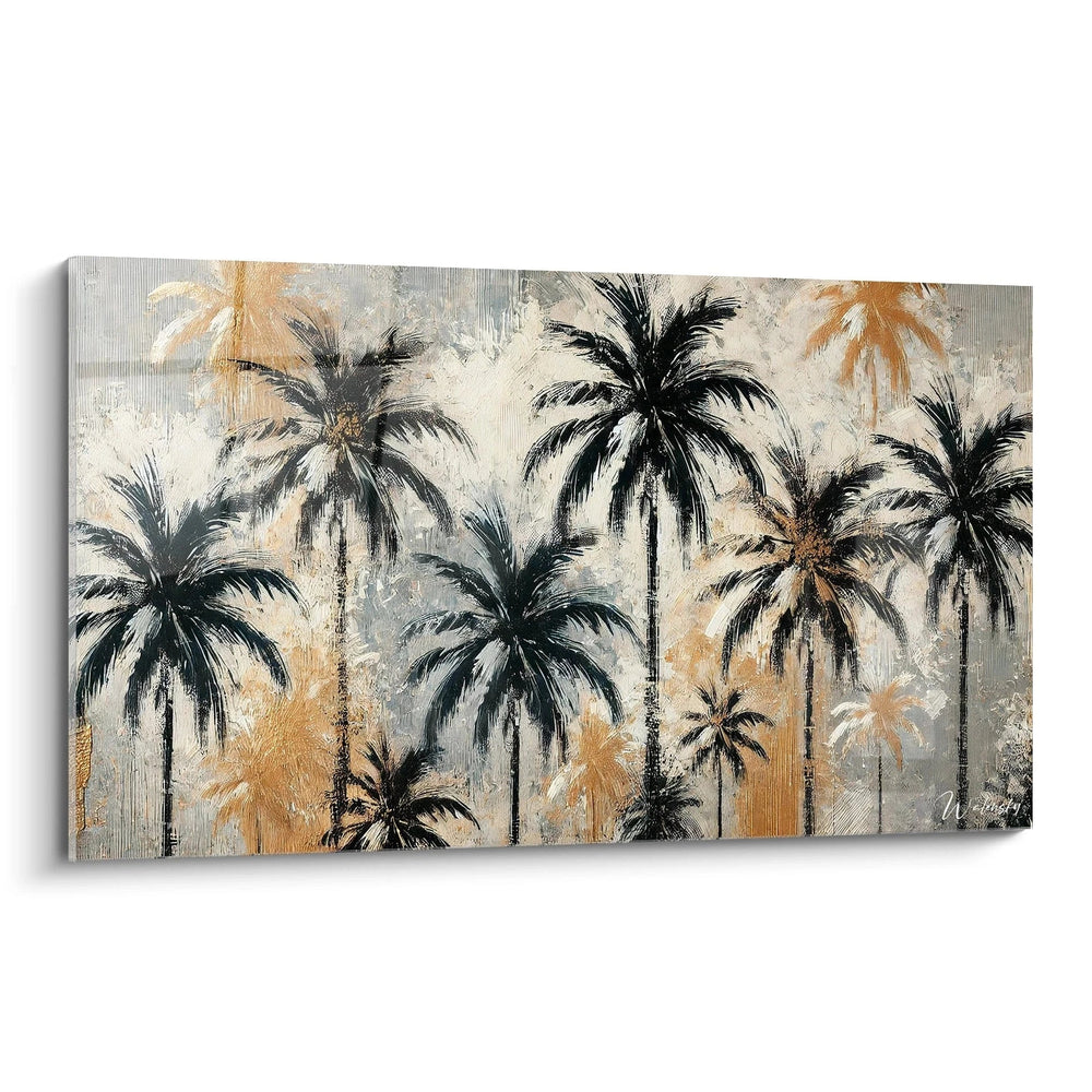 Chaque détail de ce tableau a été pensé pour éveiller en vous une sensation de calme et d’évasion, comme un souffle léger caressant la peau sous les palmes dansantes. Vous pourrez presque entendre le murmure du vent et sentir la chaleur bienfaisante du soleil sur votre peau, contrastant avec l’élégance sobre des tonalités noires, bronze et beiges qui enveloppent cette œuvre.