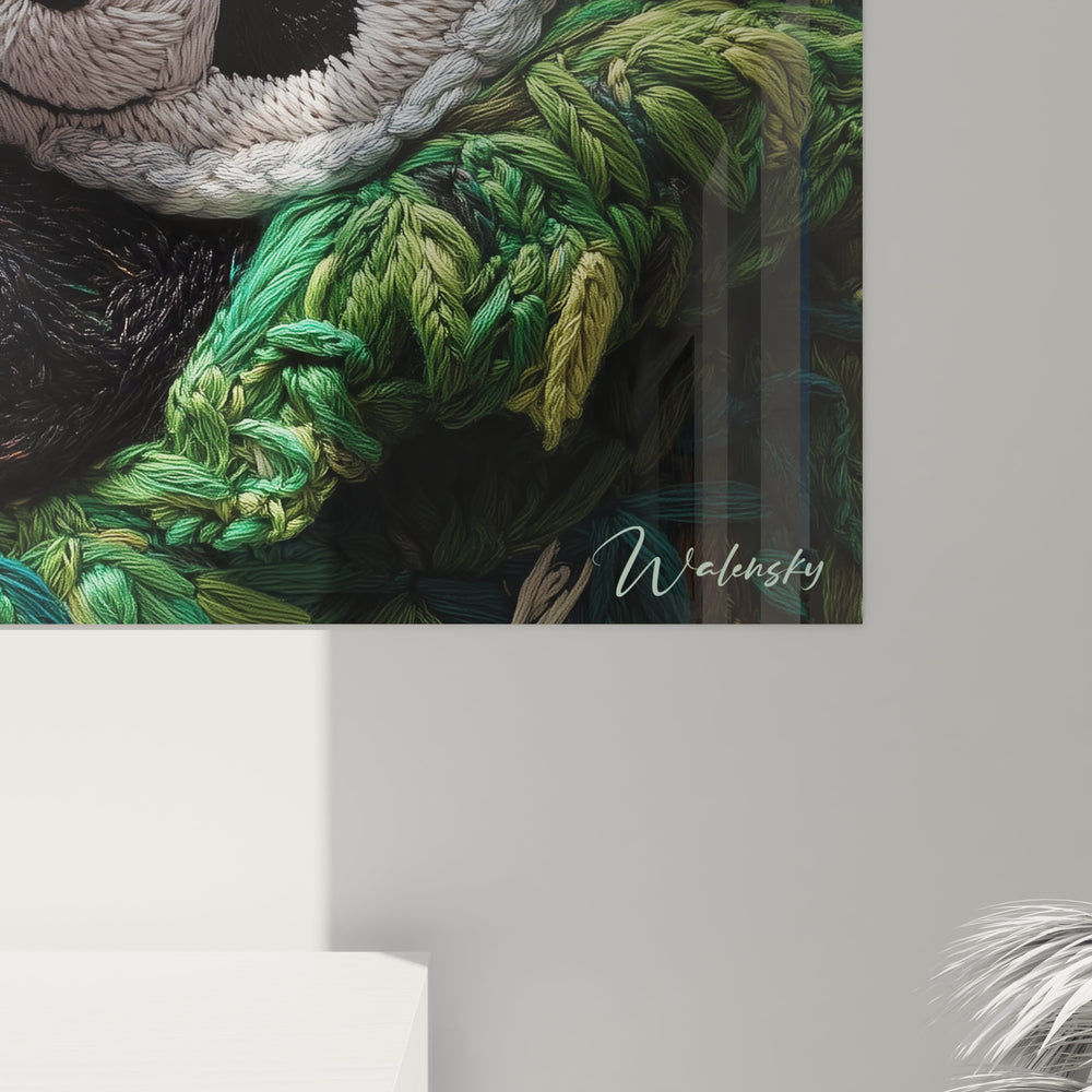 Cette œuvre s'intégrera parfaitement dans un salon ou une chambre aux inspirations naturelles ou asiatiques, dialoguant harmonieusement avec des éléments en bois clair, des plantes vertes et des textiles aux textures variées. Pour un contraste saisissant qui soulignera son caractère unique, encadrez ce tableau panda avec une bordure fine et minimaliste de couleur noire ou dans un caisson profond qui respectera sa dimension textile. Évitez de le placer face à une fenêtre pour préserver ses couleurs et maximiser la visibilité de ses textures remarquables.
